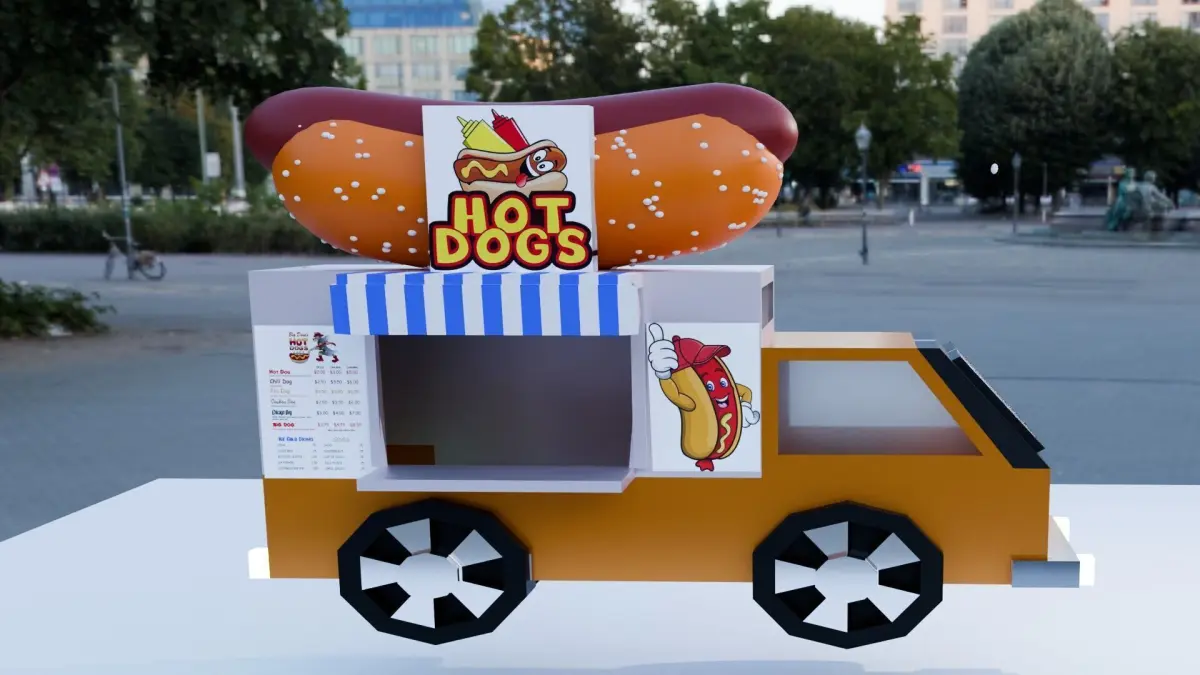 3D Low poly CARTOON lovely hotdog truck-----procedured texture nodes are all included .Ready for virtual reality, low poly games, high poly games, and other real-time apps.