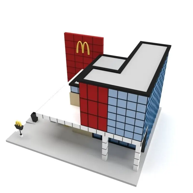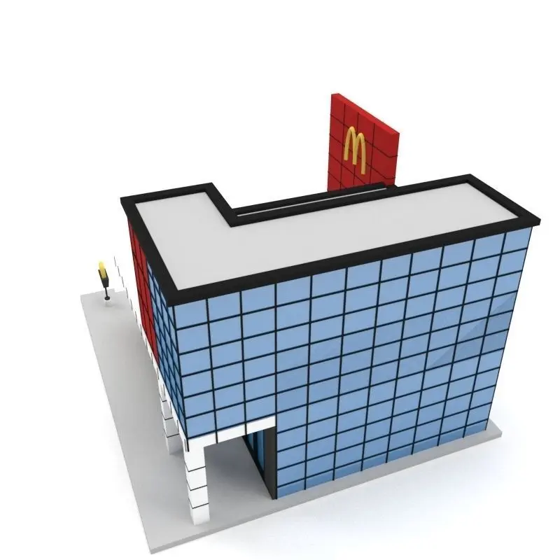 McDonald's Building 3D model. The model was originally modeled in 3Ds Max 2017 (rendered with V-Ray 3.50.04) and converted to 3Ds Max 2012 (rendered with V-Ray 2.00.03)
