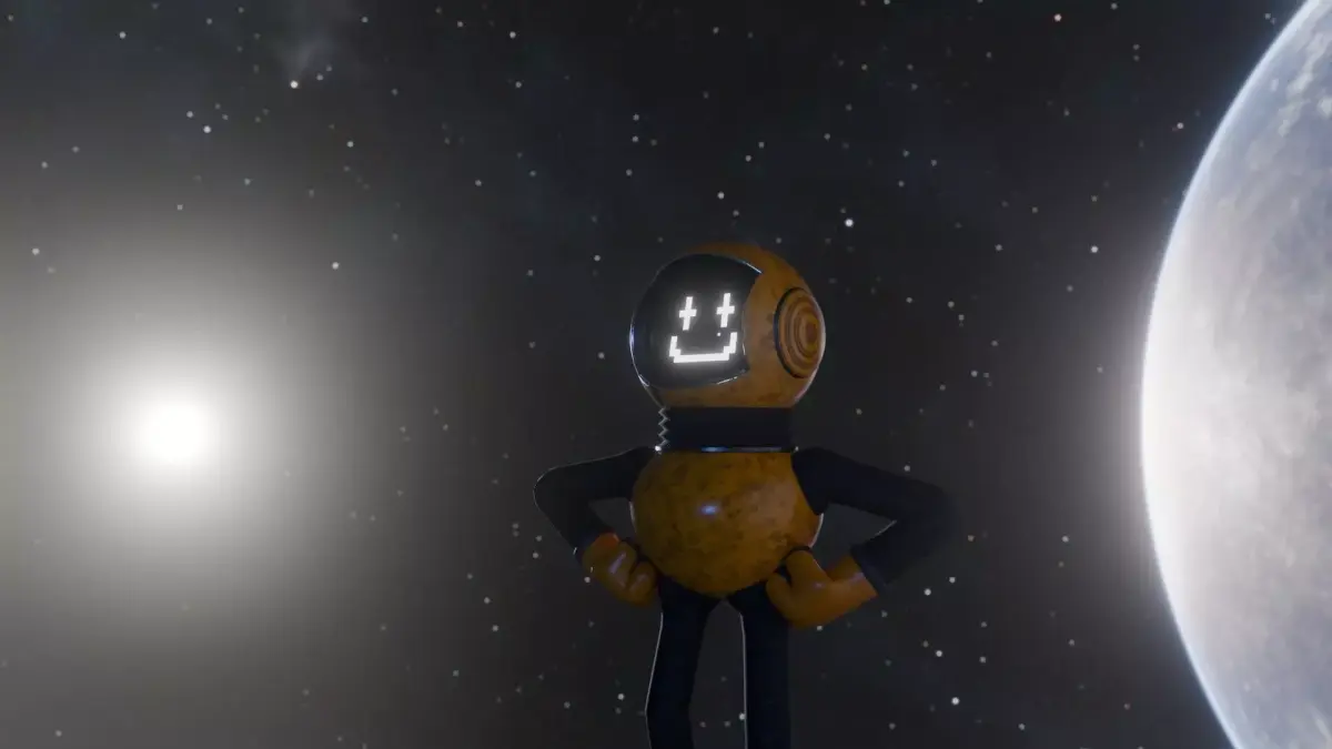 A cartoon-style space robot with interchangeable faces and a screen-depth effect, perfect for conveying expressions.