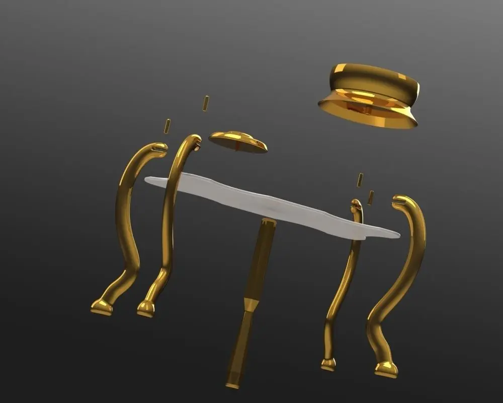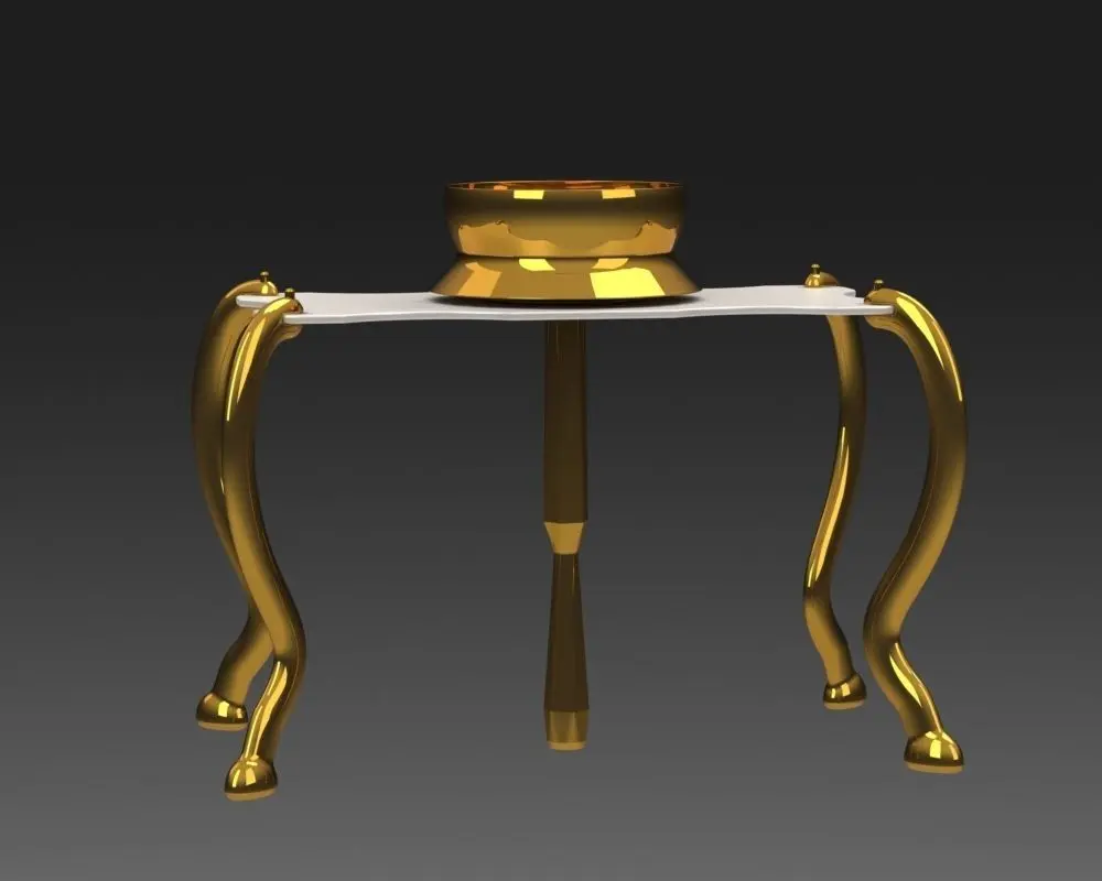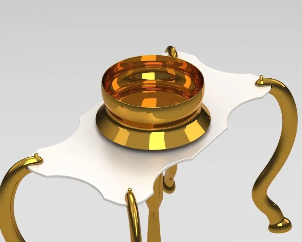 Bowl is removable, mated with R10 pin and bowl sides are lower than pin so you can put it flat when filling it with stuff.Central leg is mated with M12 screw added plate below bowl