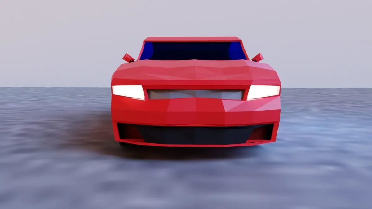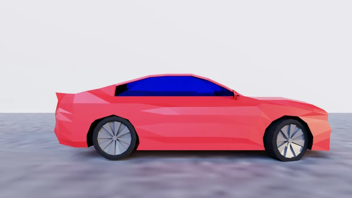 3d model of a red car with windows in a low poly style. Adapted for Blender (.blend), there are also .obj and .fbx formats. The model also has 918 vertices and 911 polygons.