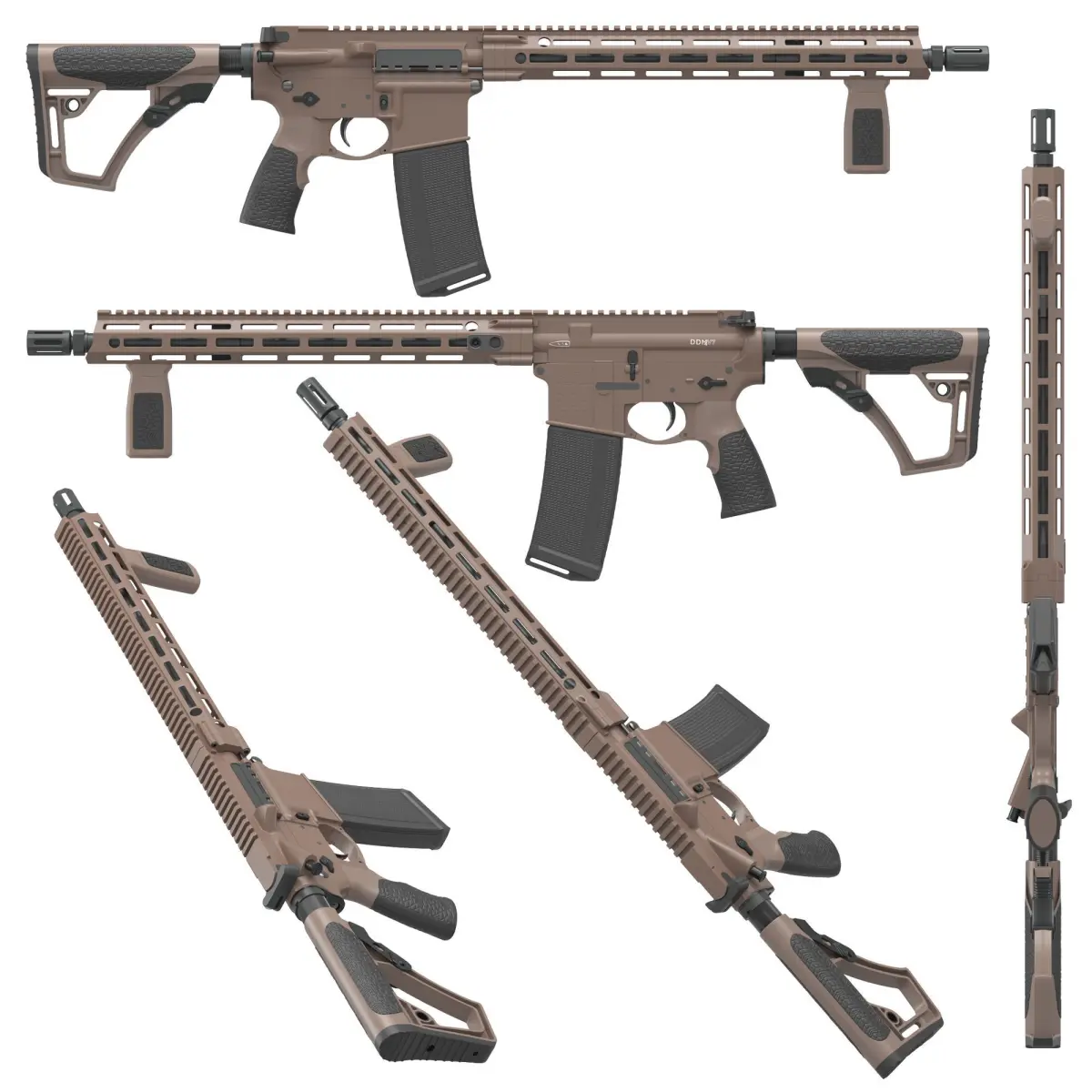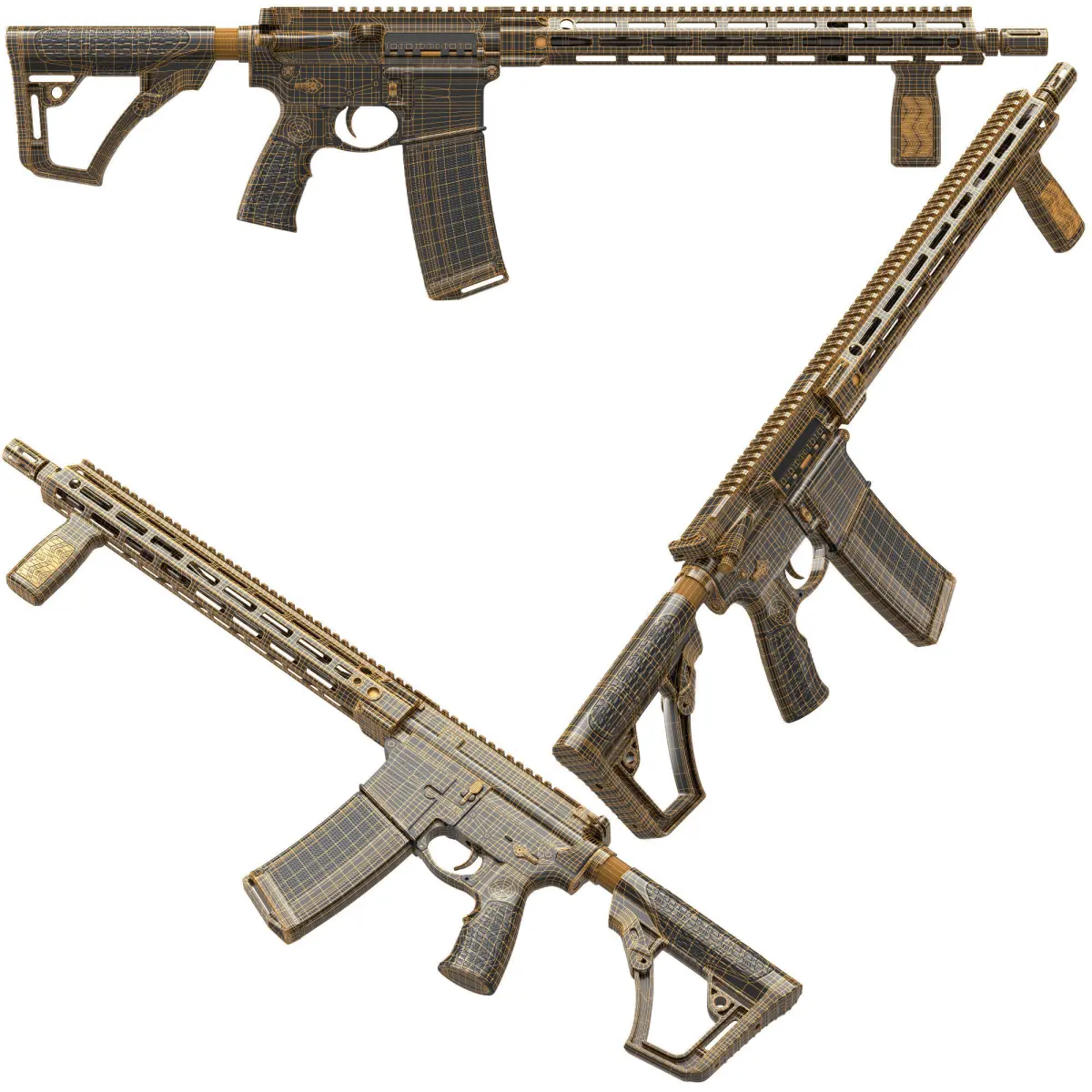 The 3d model of the DDM4V7 automatic rifle is made with maximum similarity. High poly model for close-ups and product rendering. When creating the model, drawings and diagrams were not used, so there may be deviations in the similarity of design and appearance. Materials are tuned for Vray Next 5 GPU. Displacement maps are present. OBJ and FBX formats are converted models with and without anti-aliasing for easy export. Complex composite materials were used; paint scuffs can be turned off at the artist's request.