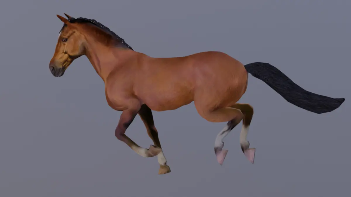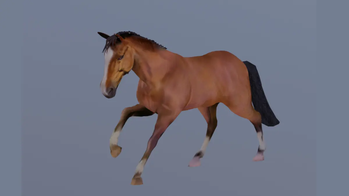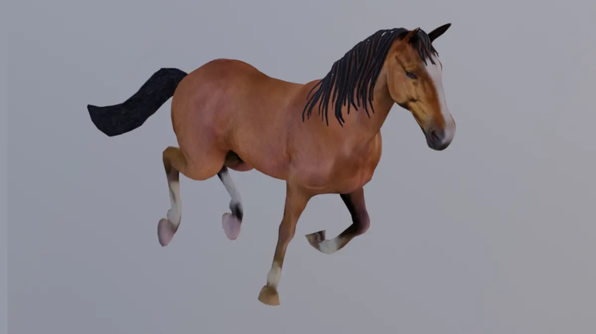 A 3D Model of a Realistic Brown Horse. Available with animation : walking and running (you can watch the video). Ready to use for gaming and movies.