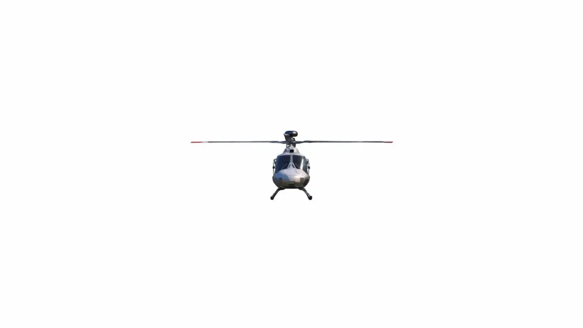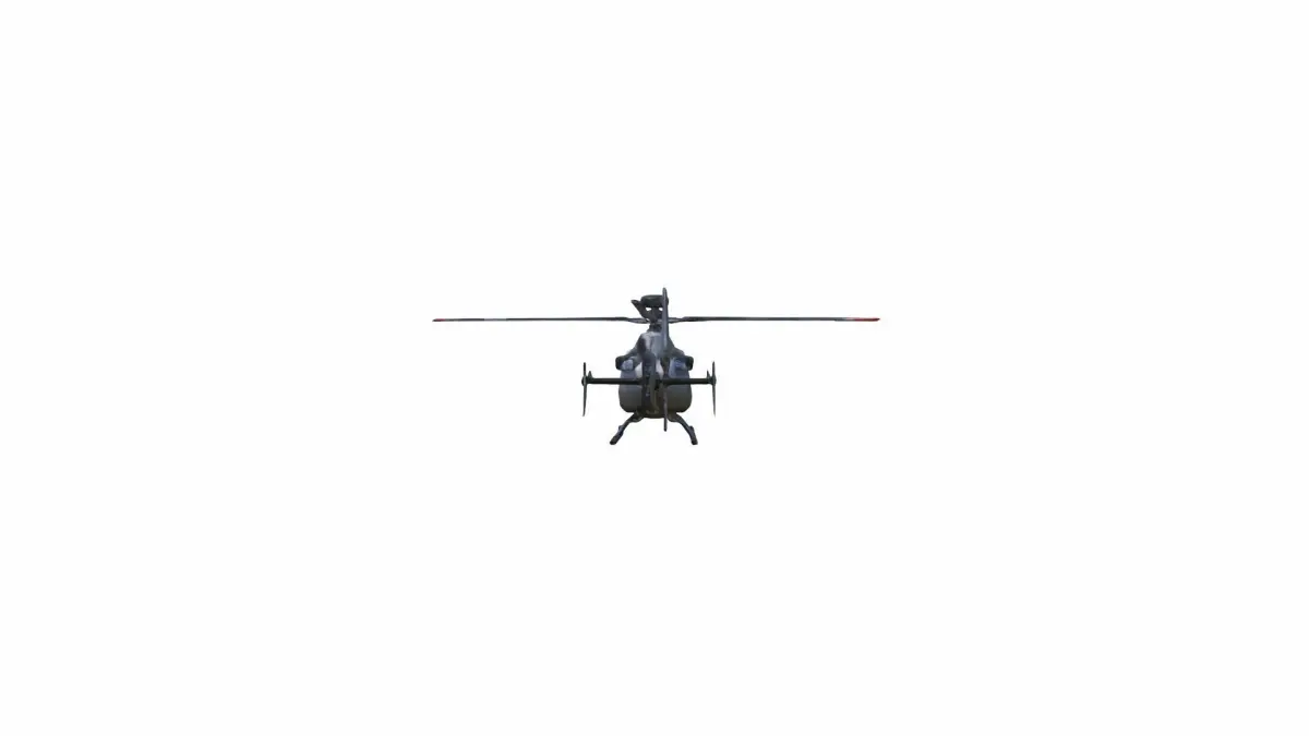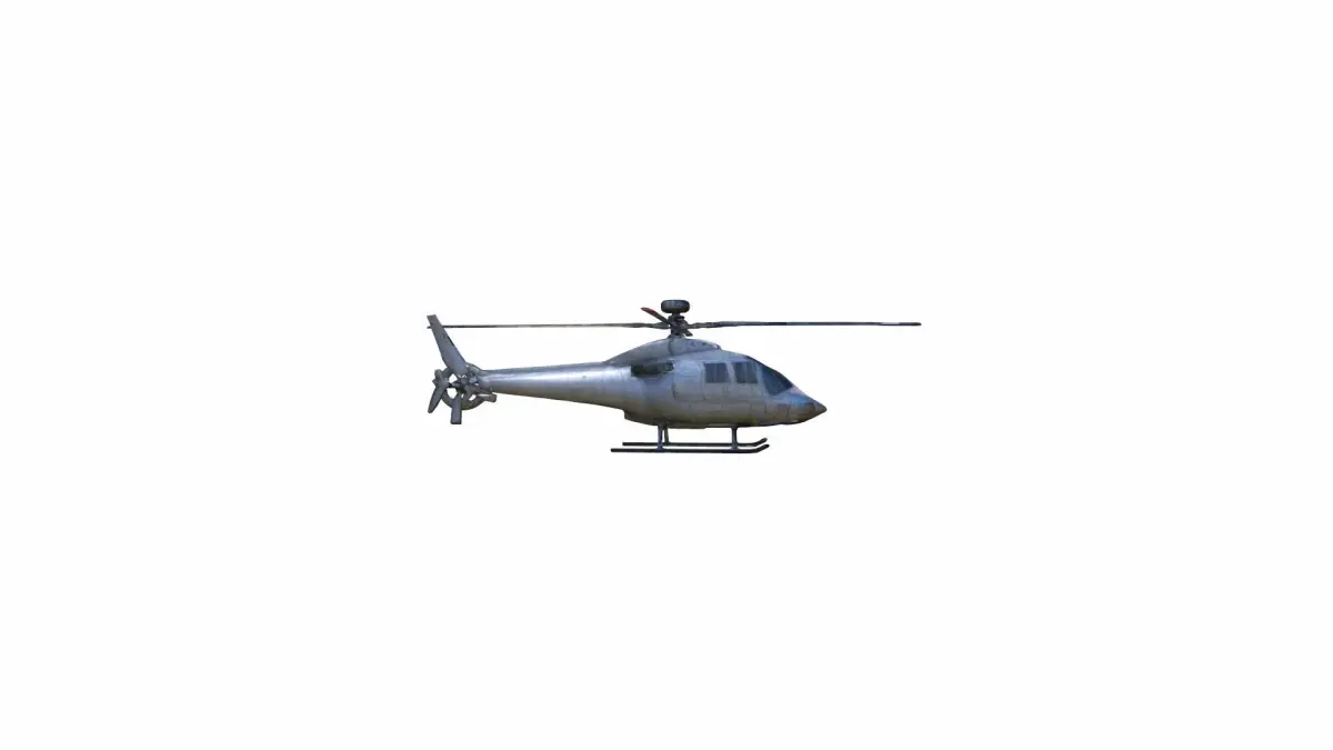 A helicopter hovers above, its spinning blades slicing through the air with a steady thrum. The craft's sleek body glints in the sunlight as it moves effortlessly and agilely across the sky. The earth blurs beneath it as it goes quickly, its strong rotor producing a continuous hum that propels it to its target.