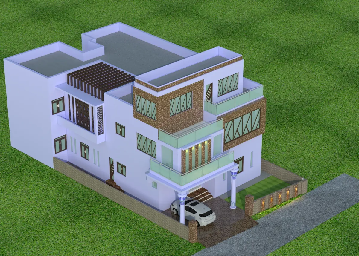 2 FLOOR 3D MODEL HOUSE WITH 6 BED ROOM, 6 BATH ROOM , 2 KITCHEN , 2 TV LOUNGE , 1 STUDY , LOW TERRACE WITH BALCONY .