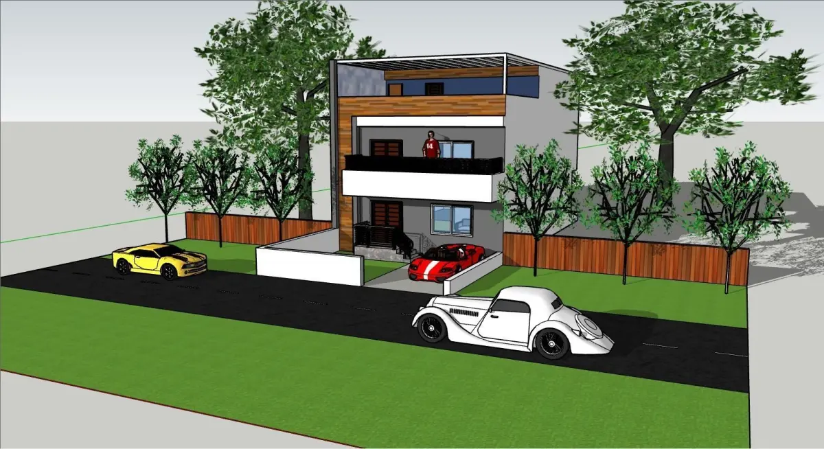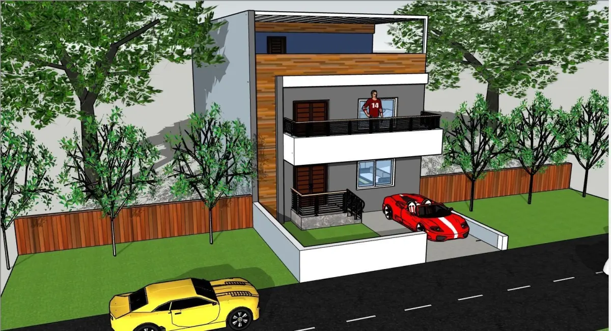 A 3D model prepared with sketchup pro 2021 Floor plans were made in AutoCad 2021 Final rendering was done in enscape It took me just 3-4 hours to prepare. If you have good command over these softwares you can prepare such plans easily.Thank you.