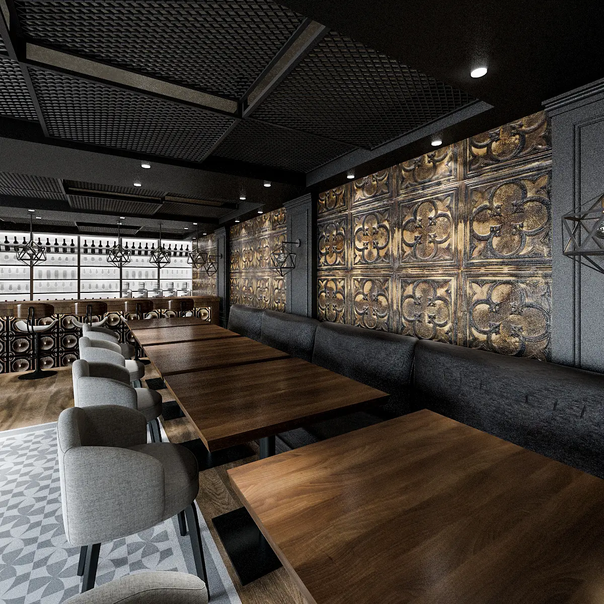 industrial style bar, harmonious colors, impressive design for your projects