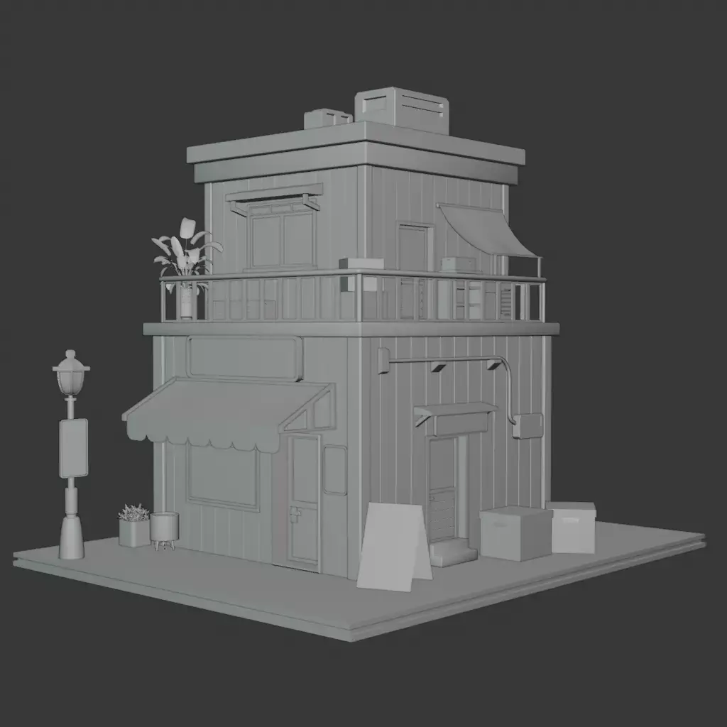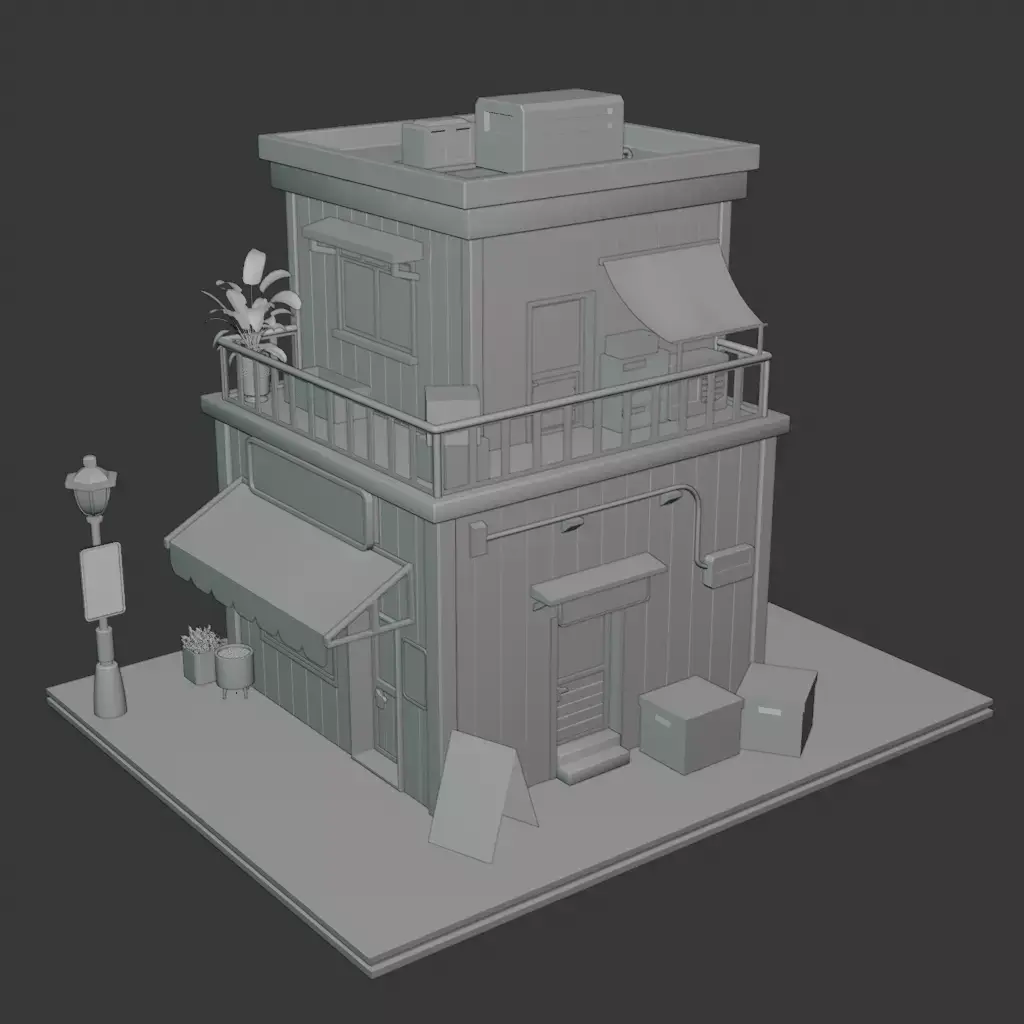 The main model in this package is the building itself. Decorative props such as potted plants are included only for rendering purposes and are not the focus of the model.