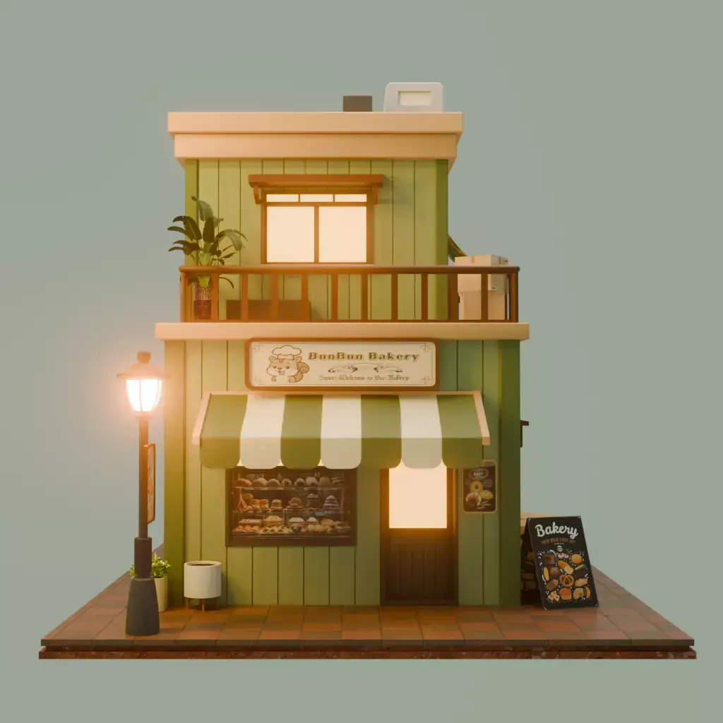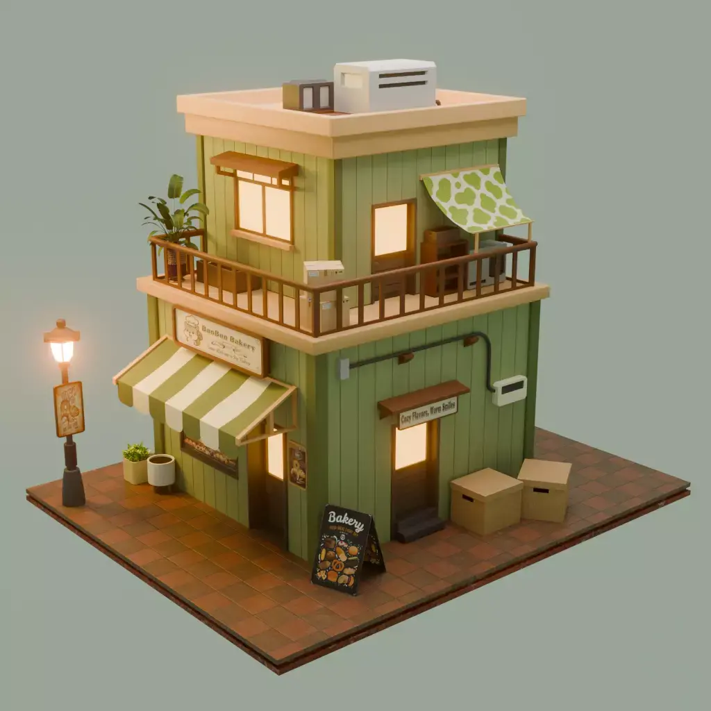 Description:This is a stylized low poly 3D model of a cute bakery house, designed with a warm and charming aesthetic. The model is compatible with Blender 4.2+ and is provided in FBX, GLTF, and USDZ formats, along with 1024x1024 textures.