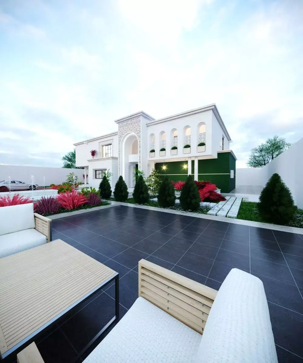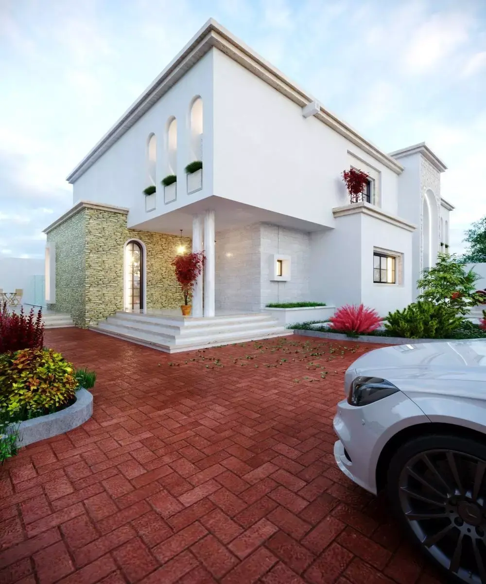 This high-quality 3D model represents a two-story residential house designed in the neoclassical style, blending classical architectural elegance with modern residential functionality. The design features symmetrical proportions, refined details, and a timeless aesthetic inspired by classical architecture.