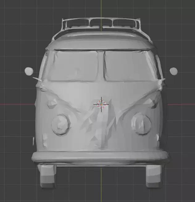 3D model of a 1950 Volkswagen Camper Van with open roof. Classic split-window design at the front, rounded body with chrome details, iconic logo on the nose, detailed headlights, side mirrors, and roof rack. The roof should be open, showing interior seating and retro details. Rubber tires with tread, chrome hubcaps, and realistic glass windows with reflections.