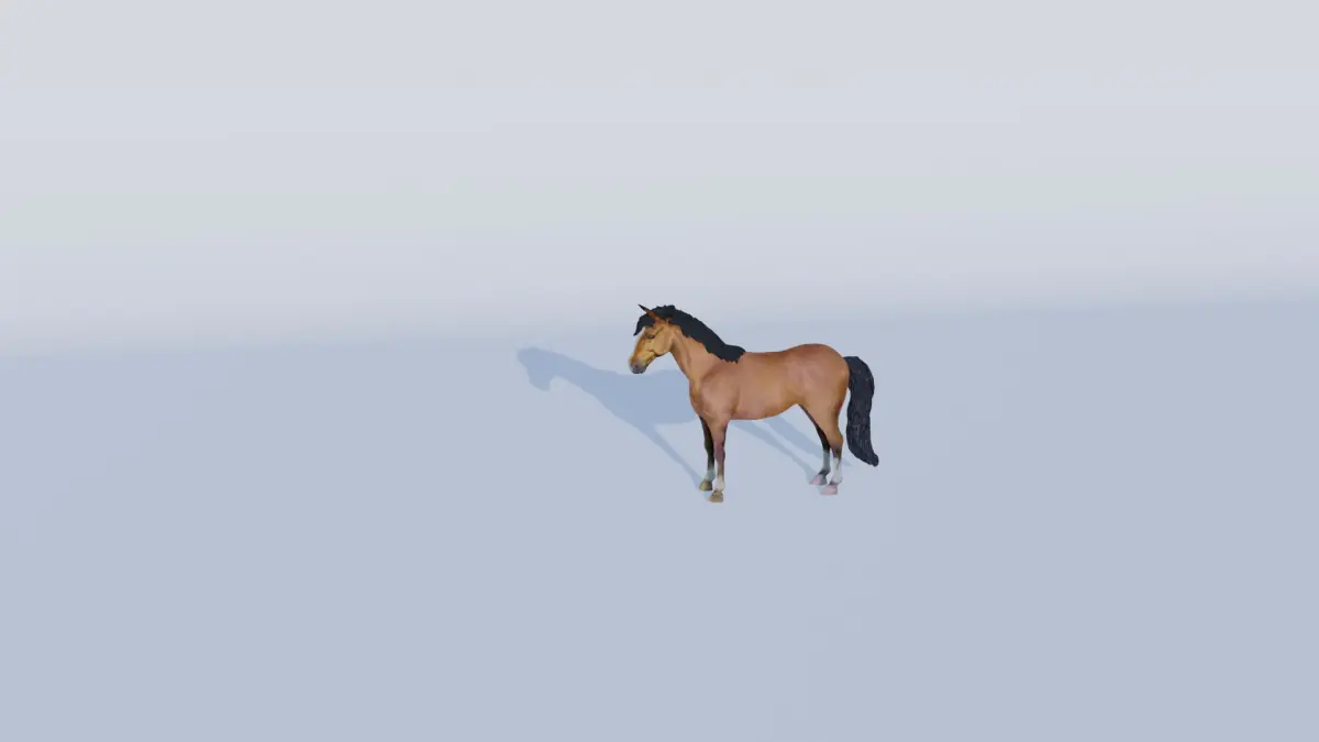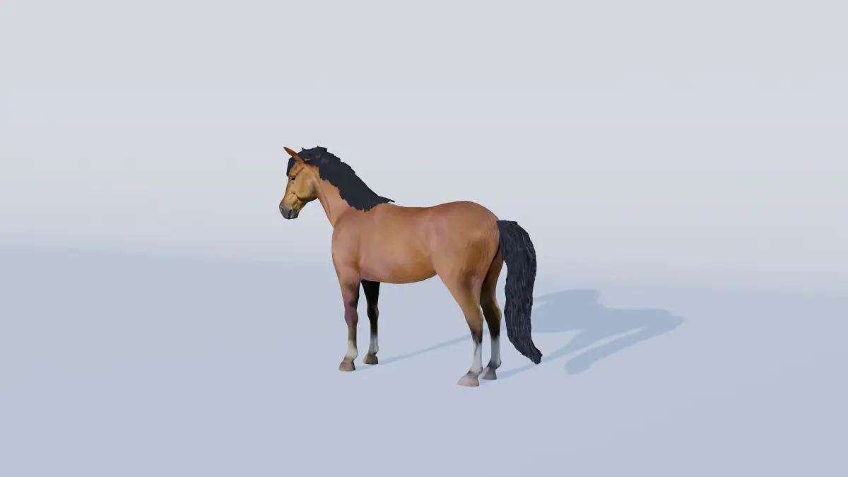 A 3D Model of a Brown Horse. Available with animation : running (you can watch the video). Ready to use for gaming and movies.