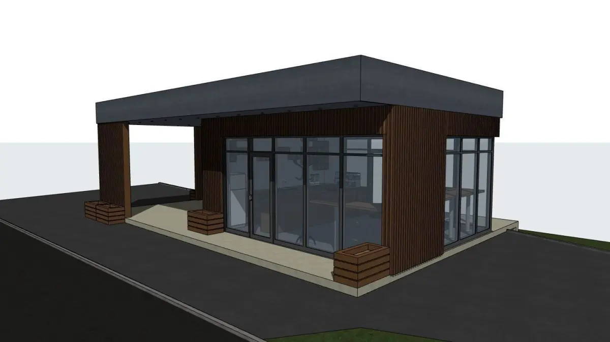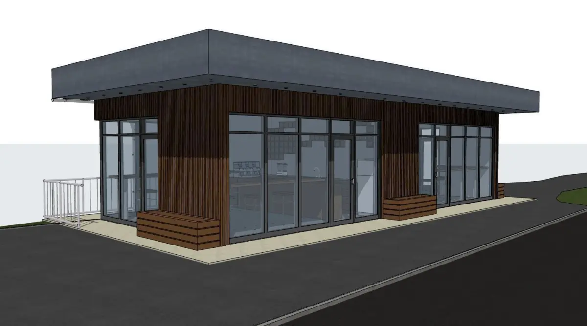 - 3D model of a bus stop with a cafe in 4 versions
