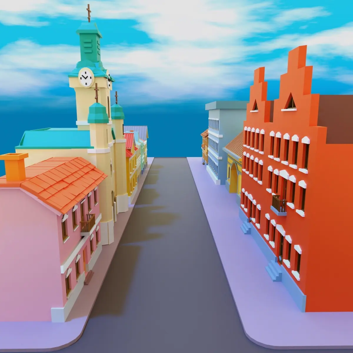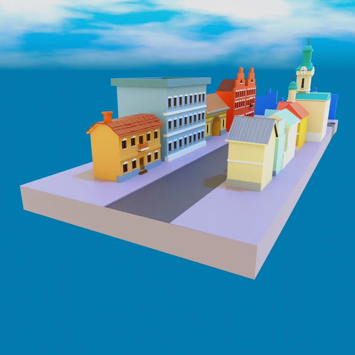 this street made in blender for use in cartoon animation or projects for personal use and learning. this project include physical lightning and materials.