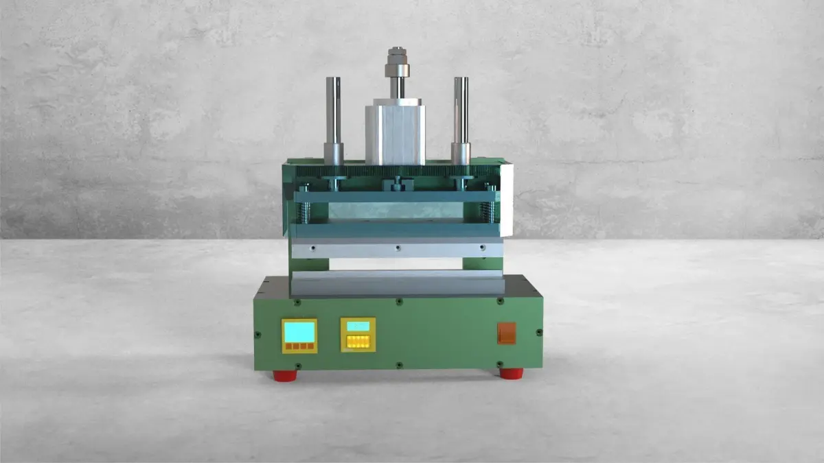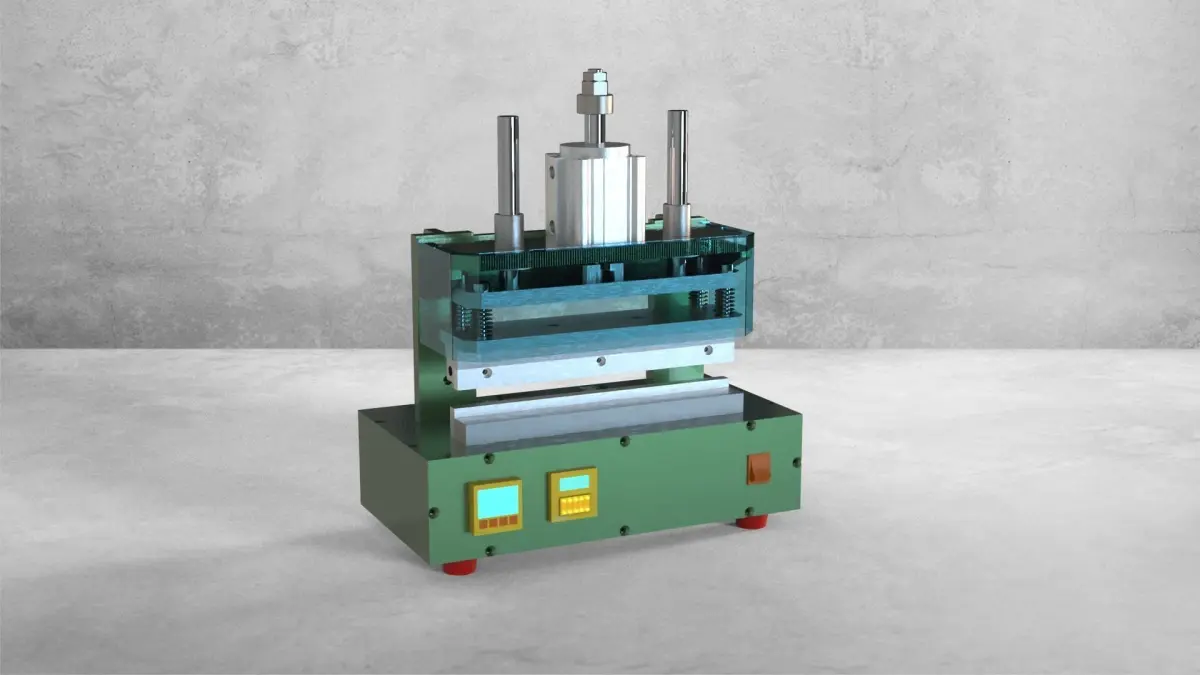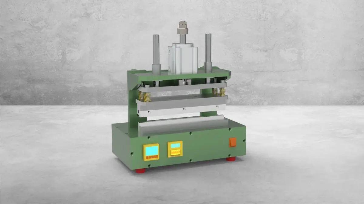 This is a three-dimensional model of a hot press. The main structure of the model is the cylinder assembly, workbench, base, reset structure and other components, for your reference when designing.