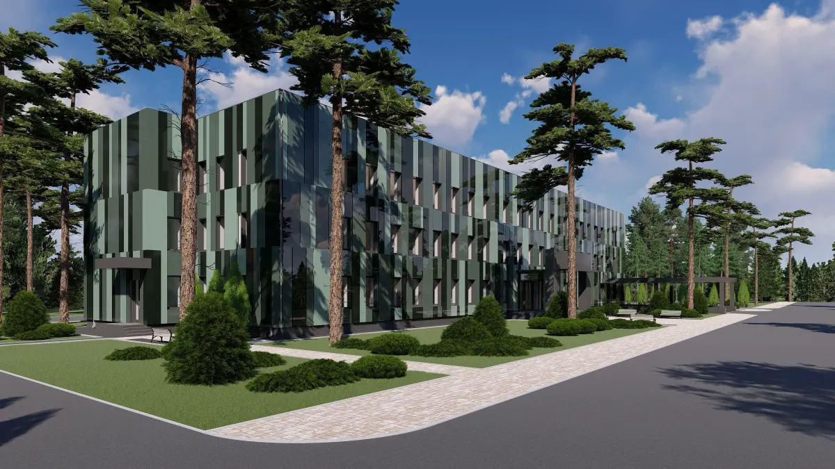 - 3D model of a public building in 4 variants of different facades