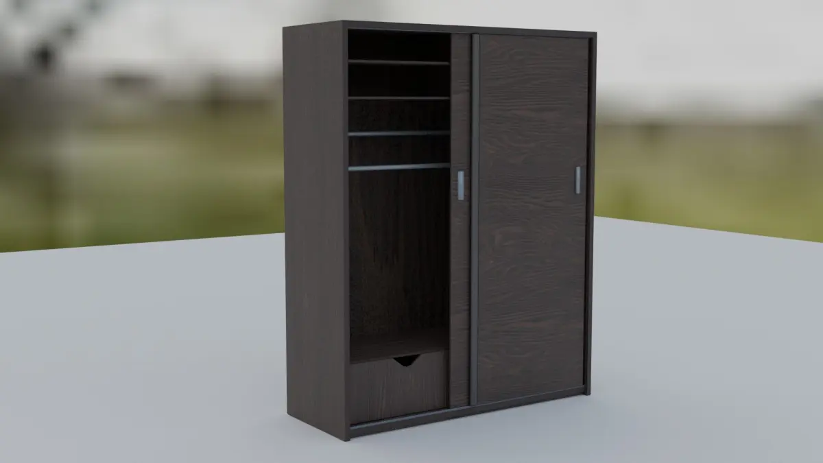 3d model of a sliding wardrobe made of ebony.The idea was invented by the author of the project.