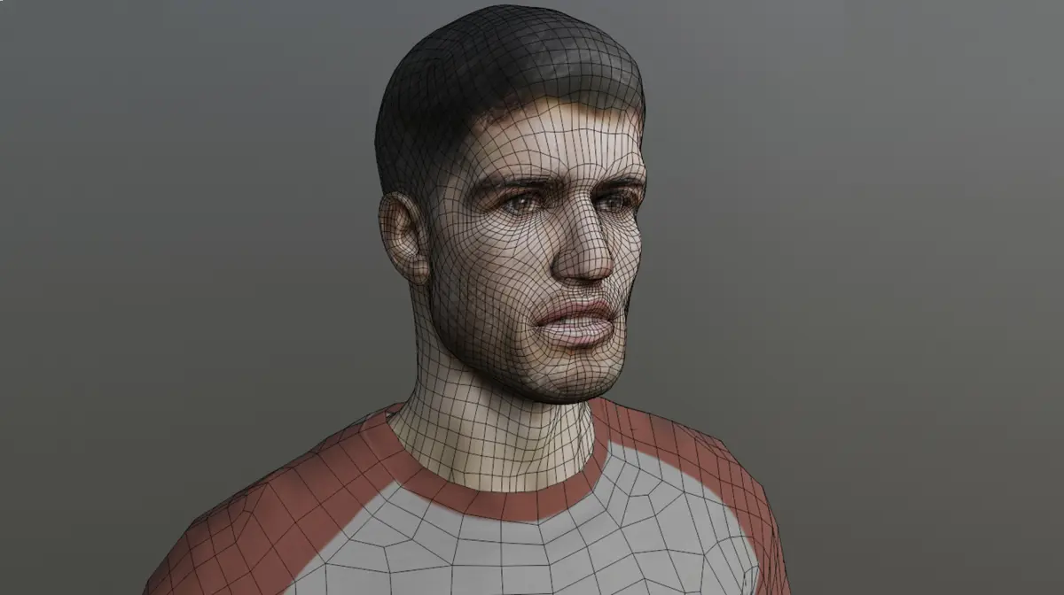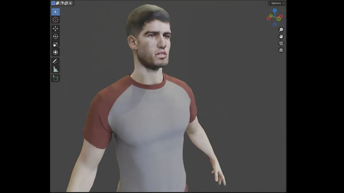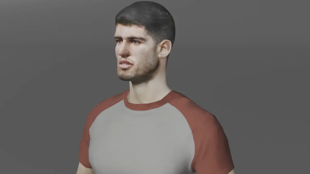 Introducing a realistically sculpted 3D model of a professional tennis player in the classic A-pose, designed and rendered using Blender. This neutral stance is ideal for rigging and animation pipelines, making it the perfect starting point for character integration in games, simulations, cinematic projects, or VR environments.