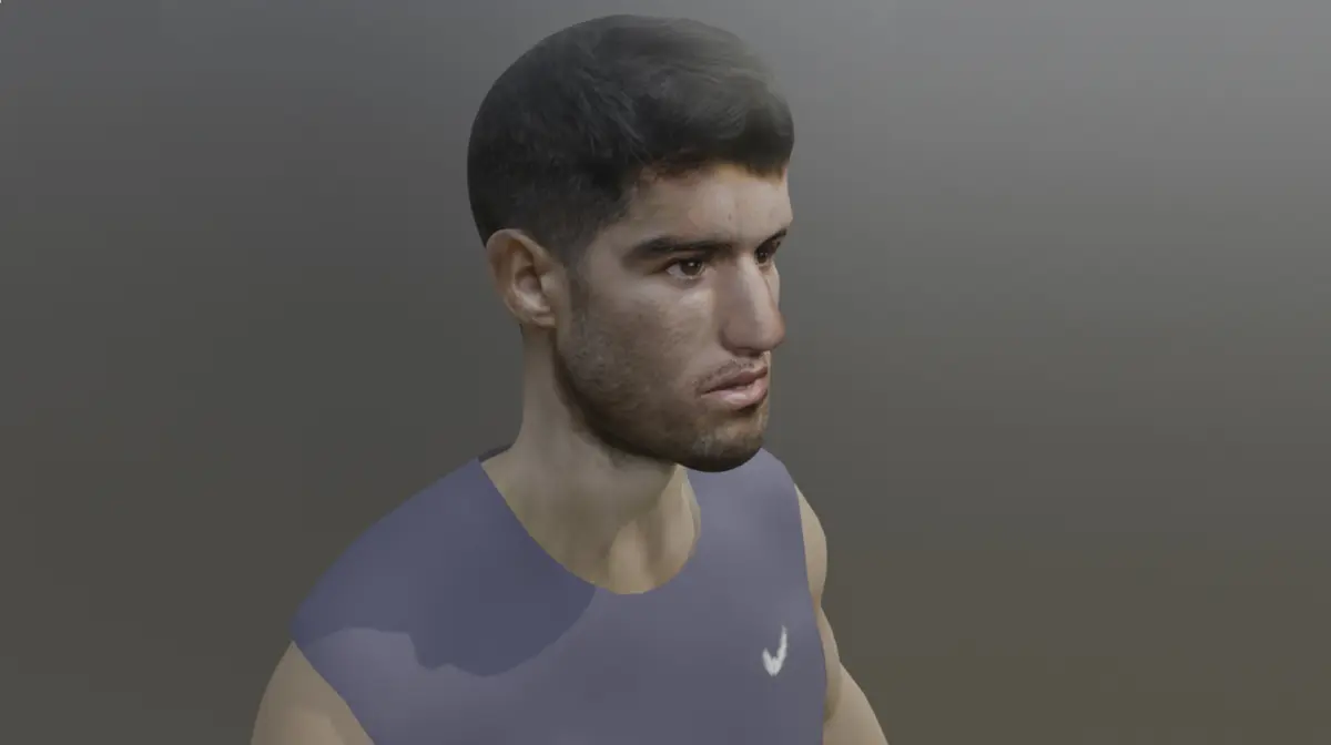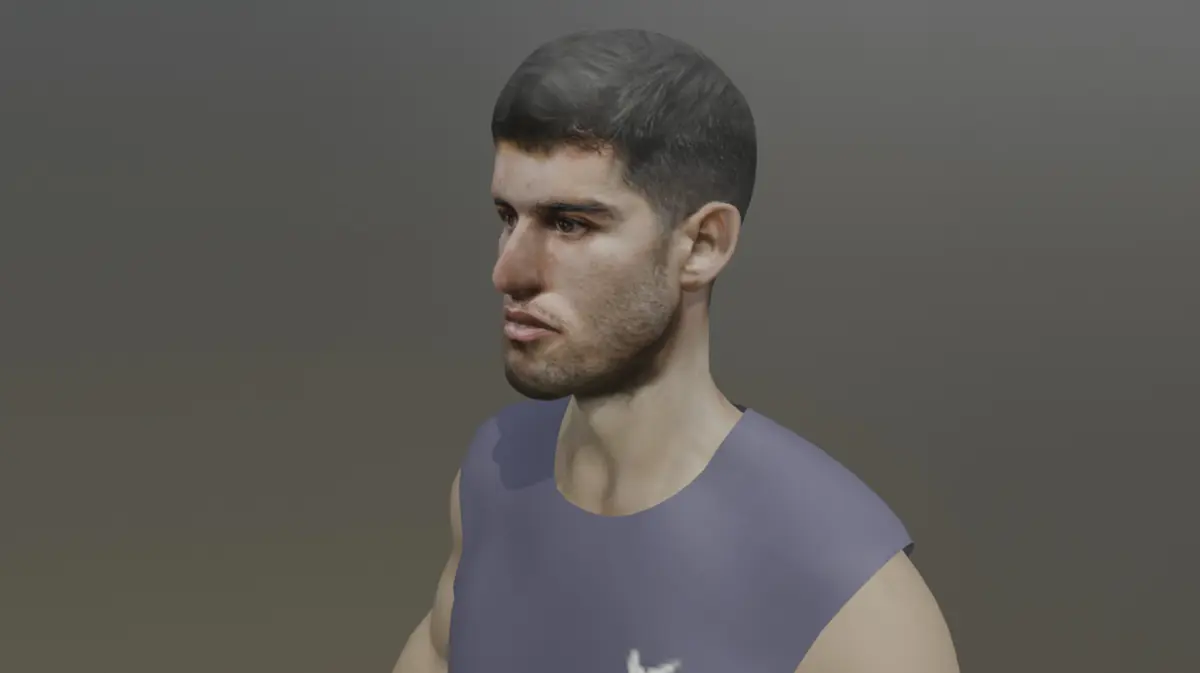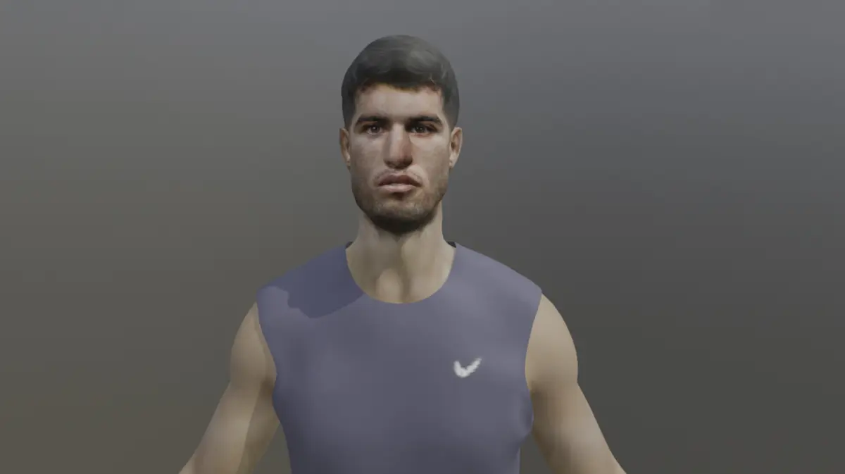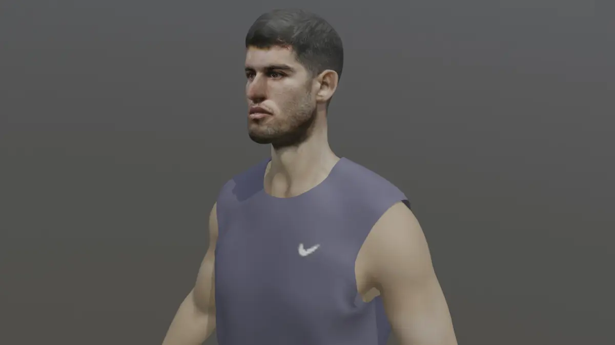 Introducing a realistically sculpted 3D model of a professional tennis player in the classic A-pose, designed and rendered using Blender. This neutral stance is ideal for rigging and animation pipelines, making it the perfect starting point for character integration in games, simulations, cinematic projects, or VR environments.