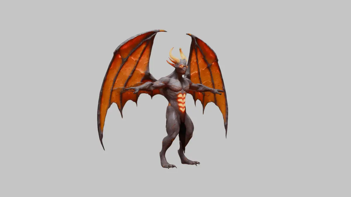 3D Model of a Winged Demon in T-Pose