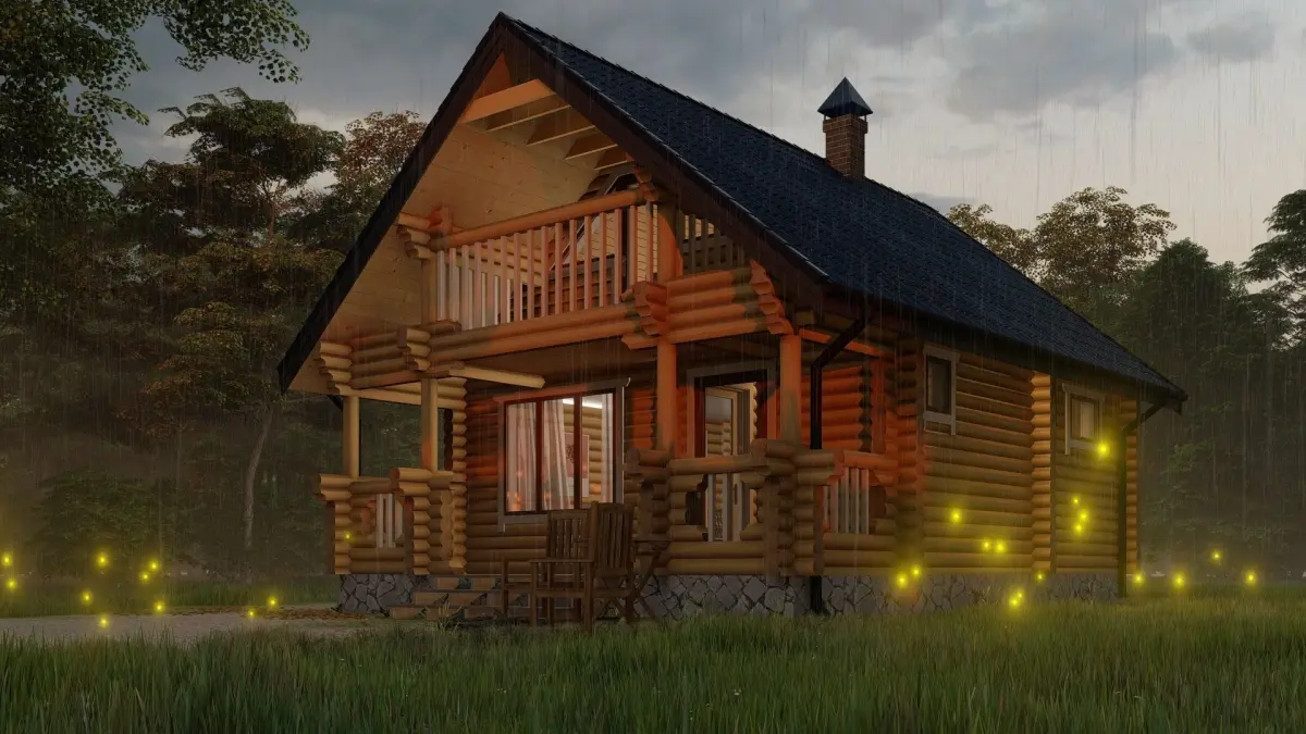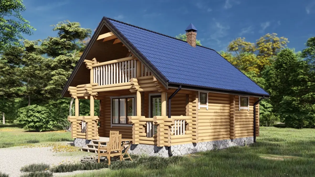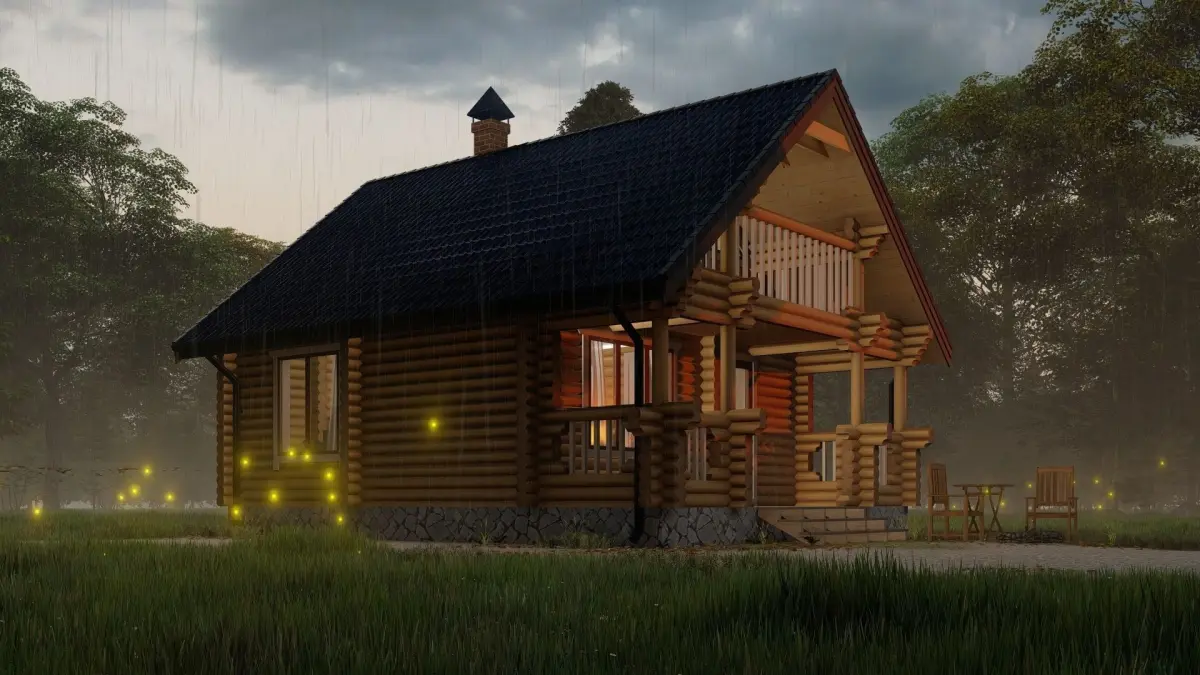 - 3D model of a wooden bathhouse