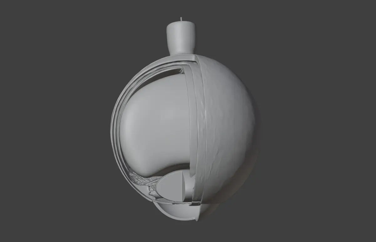 This 3D model of the anatomy inside the human eye provides a highly detailed and anatomically accurate representation of the internal structures of the eye. It highlights key components, including the cornea, iris, pupil, lens, retina, macula, optic nerve, and vitreous body, offering a clear visualization of how light is focused and processed to create vision.