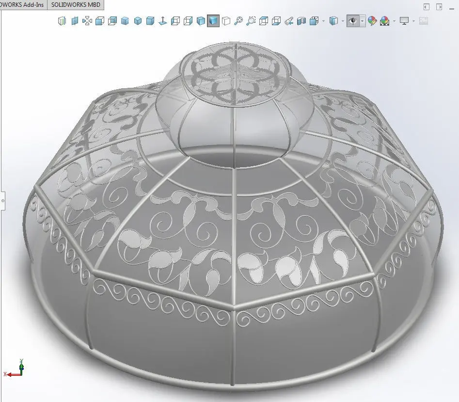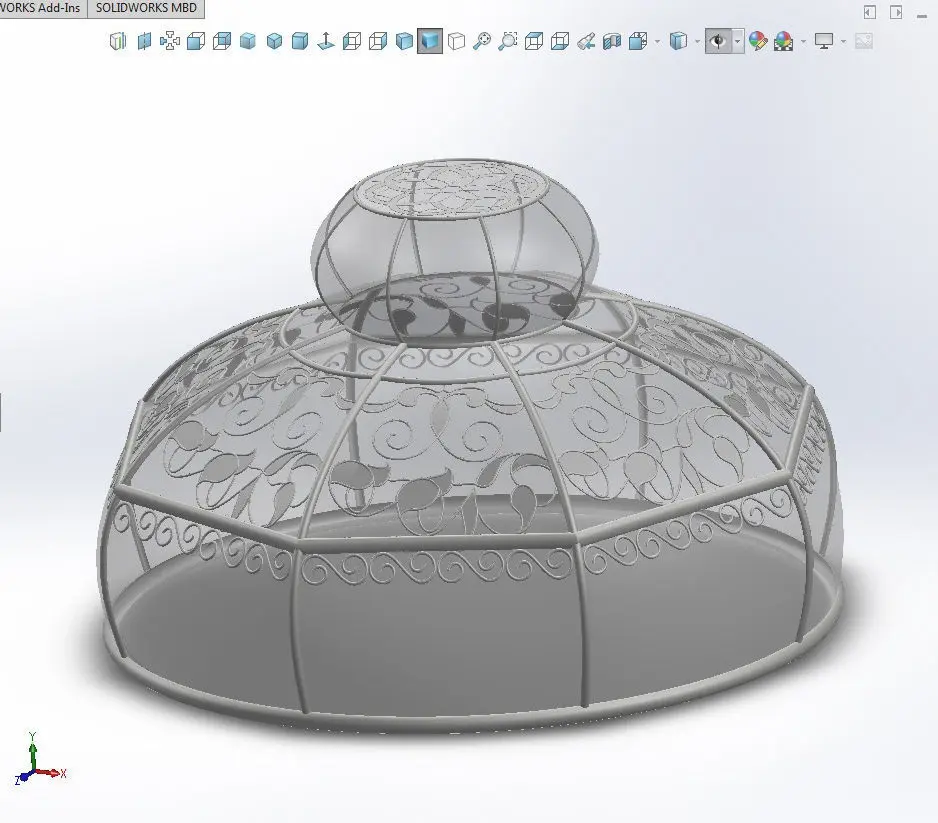 Art deco iron dome of garden exterior. As one of the 3D models of sophisticated architectural artwork, exterior decoration, garden ..