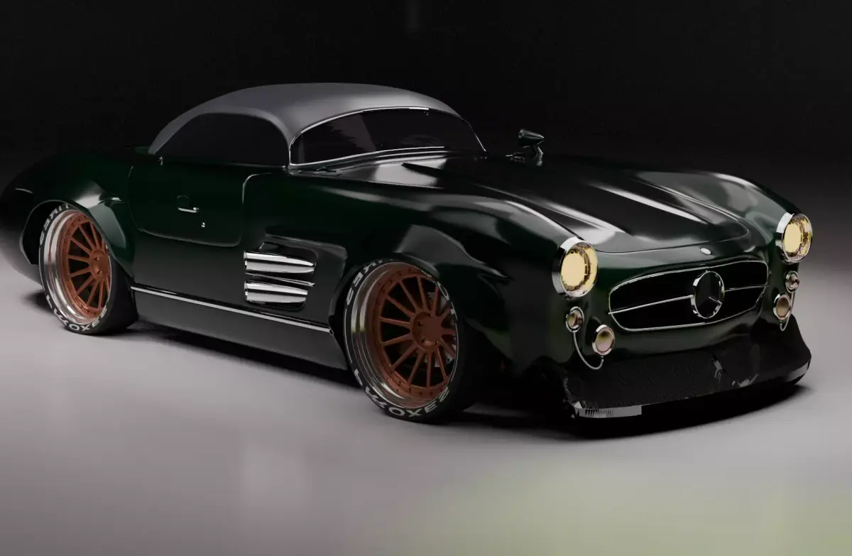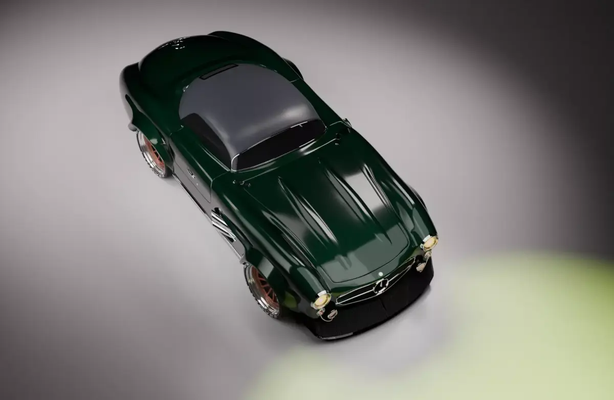 The exterior features clean topology and well-defined geometry, capturing the signature design elements of the vehicle.