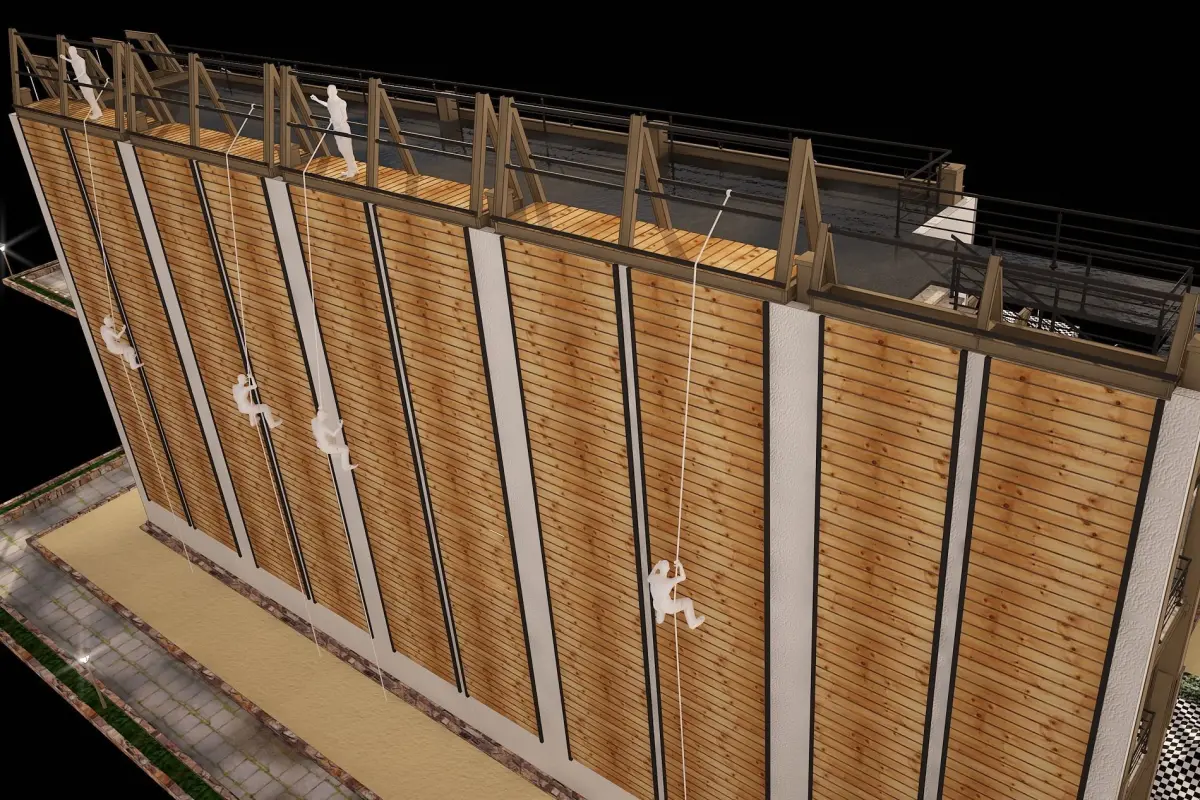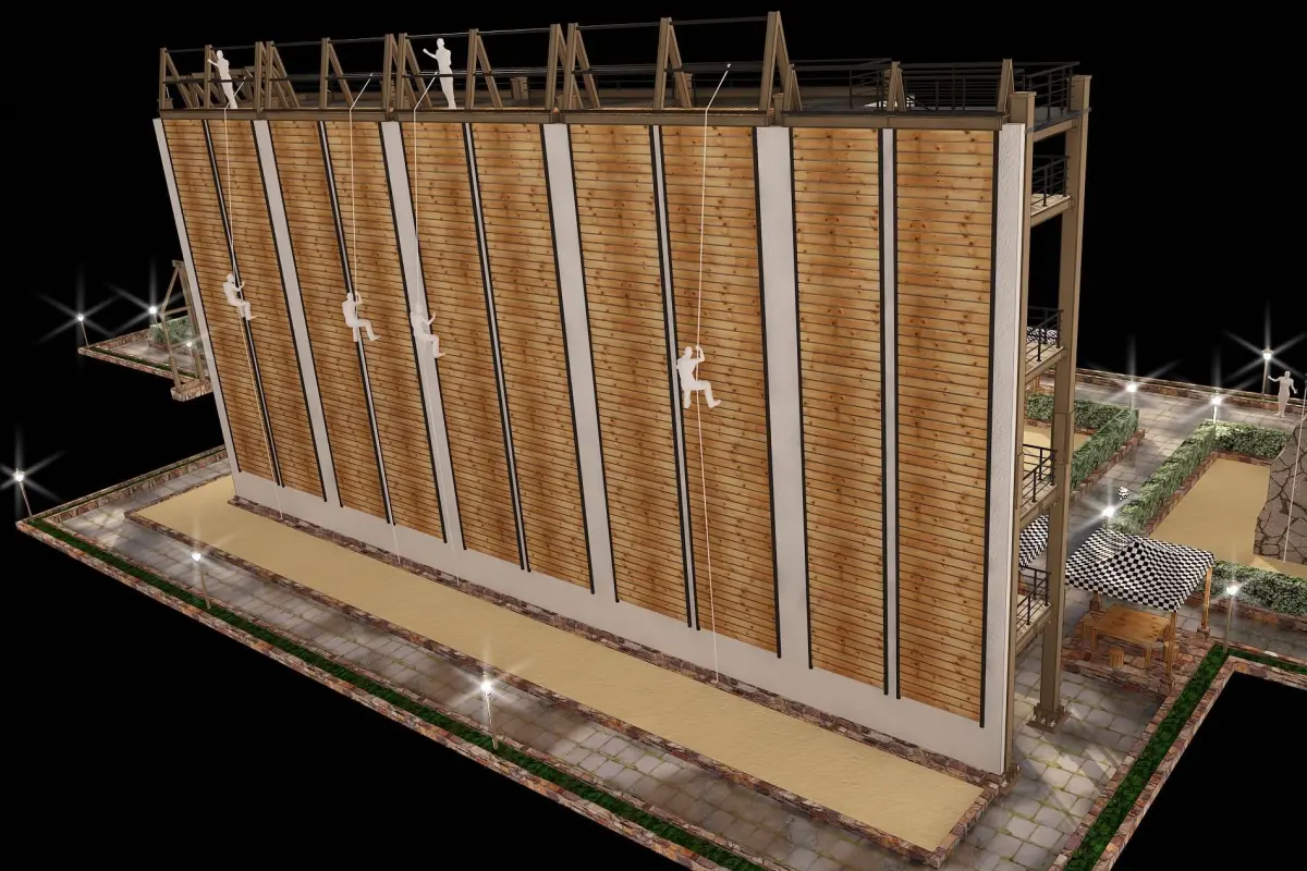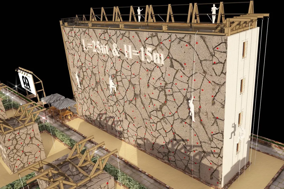 3D model of rock climbing and rappelling site with full details and one-to-one scale.Ready to build a 3D rock climbing game in five difficulty levels A to E.
