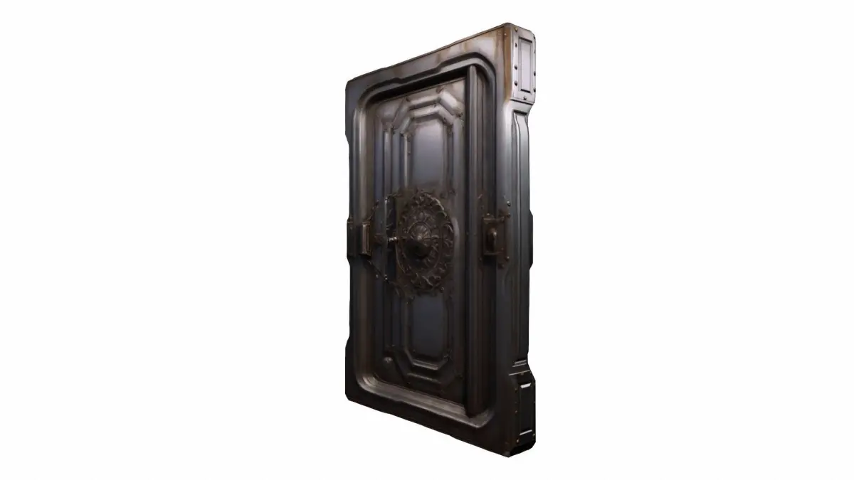 The metal door is towering and imposing, and its polished surface feels cold to the touch. It exudes solidity and strength with its dark gray color and rivets along the edges. A big, industrial handle lies in the center, polished by years of use. Heavy and soundproof, it swings open with a harsh, echoing creak, guarding what lay beyond.
