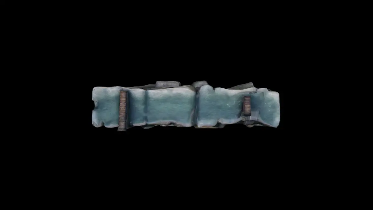 The river acts as a natural barrier, with its vast, rushing waters cutting across the terrain with unwavering intensity. The stream moves quickly, bringing trash and reflecting the sky in sparkling ripples. The steep cliffs that flank its margins make crossing difficult. The sound of running water fills the air, forming an imposing but peaceful border.