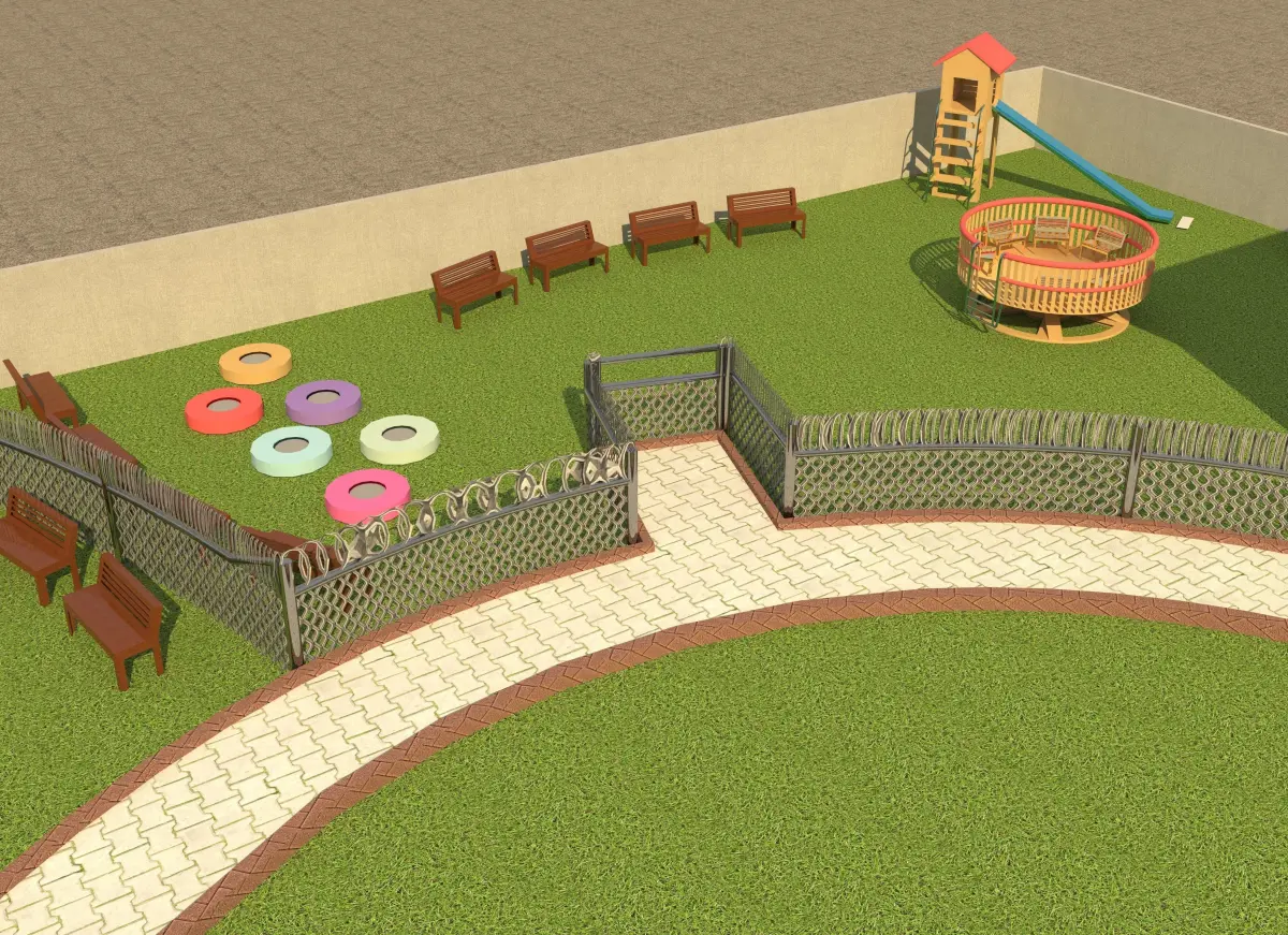 The children's park in the model would have a variety of play equipment, such as swings, slides, and climbing frames. The park would also have open spaces for running and playing games. Users would be able to see the layout of the park and explore the different play areas.