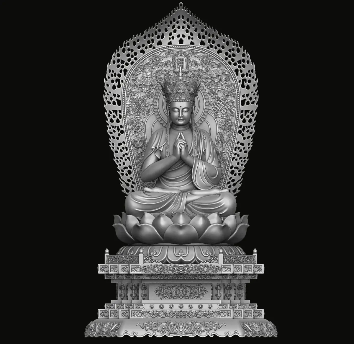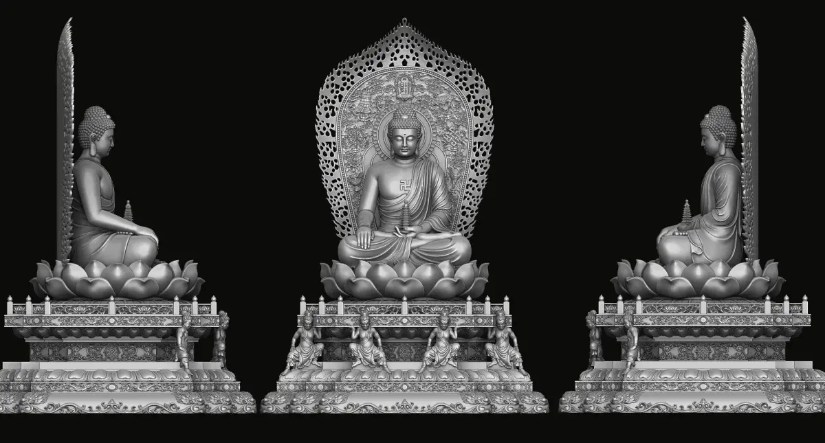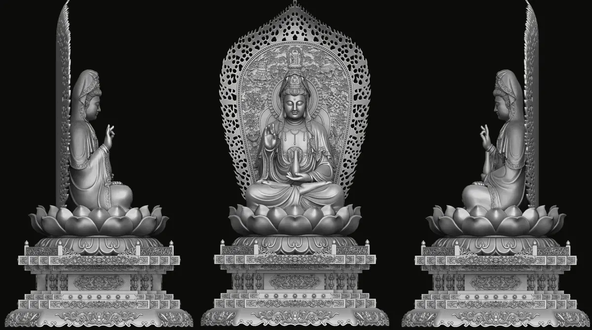 3d model sculpture of three holy buddhas