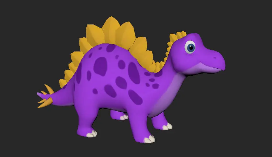 Cute Cartoon Stegosaurus Dinosaur 3D Model with Textures