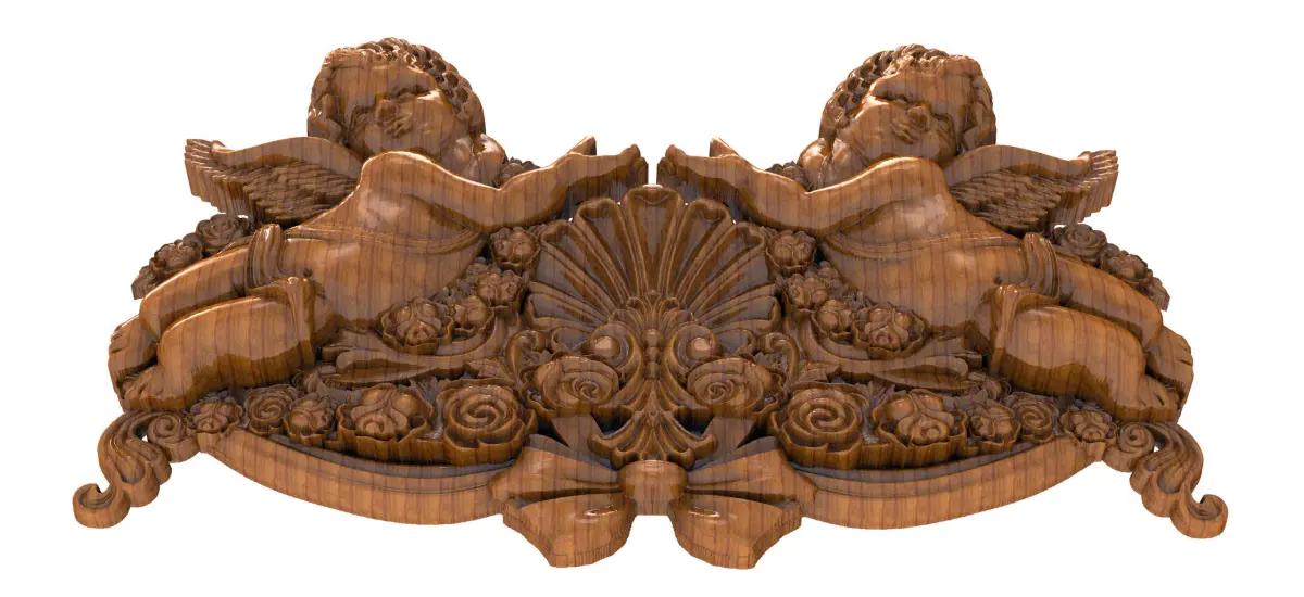 Home Catalog 3D Model STL angel wooden carving of two angels 3D model