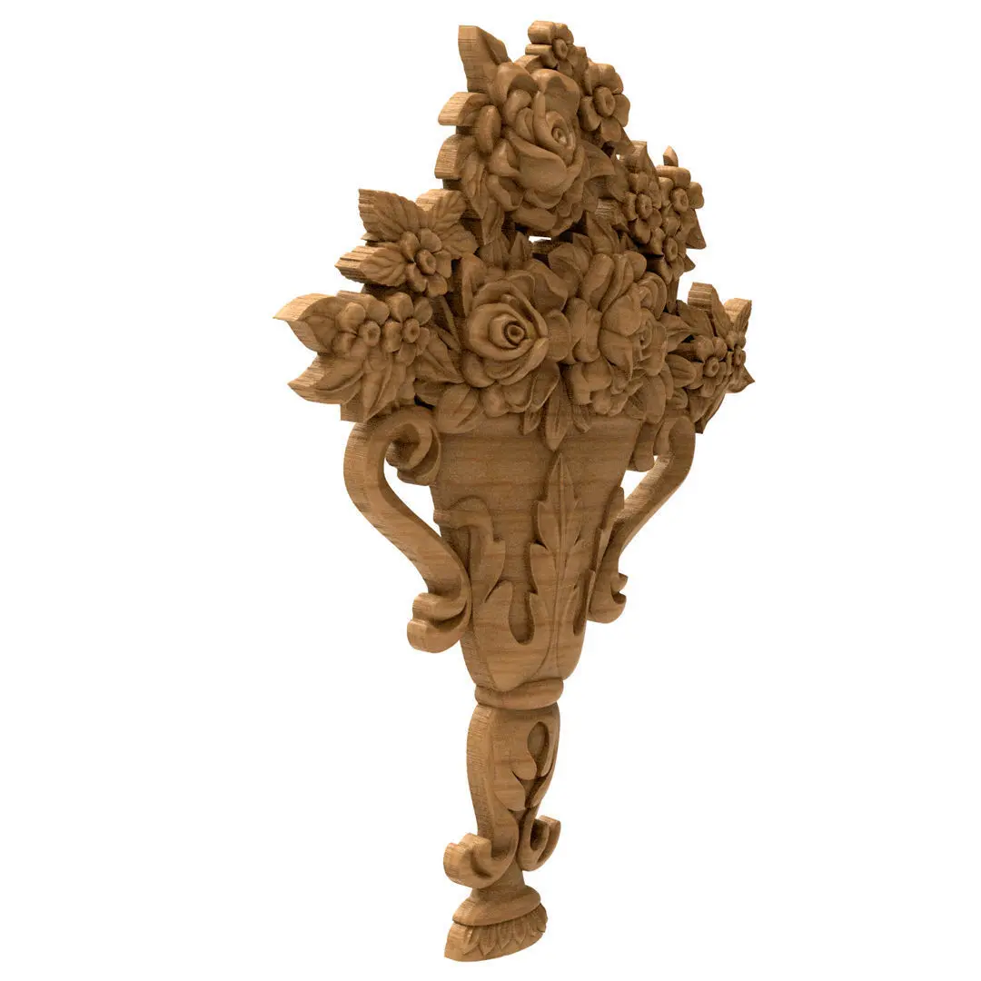 Home Catalog 3D Model STL Decoration carved wooden vase with roses 3D model