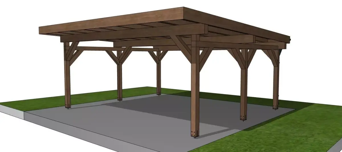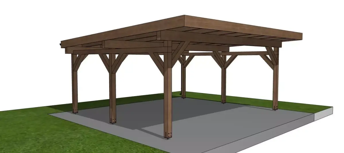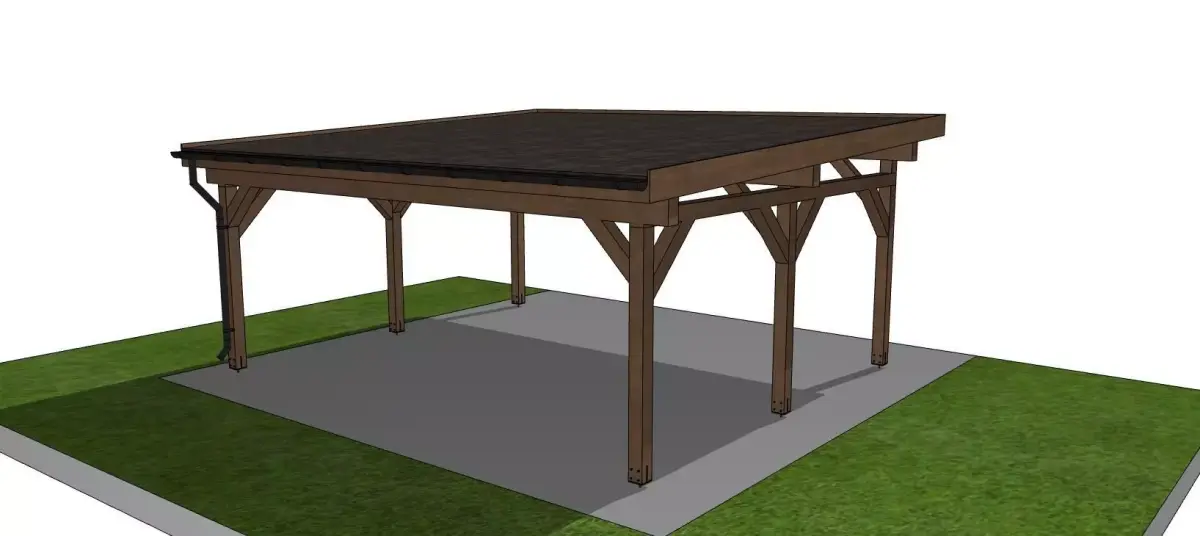 flat roof carport 3d, wooden carport, asphalt shingle roof 3d, car shelter 3d, timber pergola, garage shelter, exterior visualization asset, wooden structure 3d, 3d architecture model, parking shed 3d, backyard carport, modern car shelter, real-time asset, PBR carport