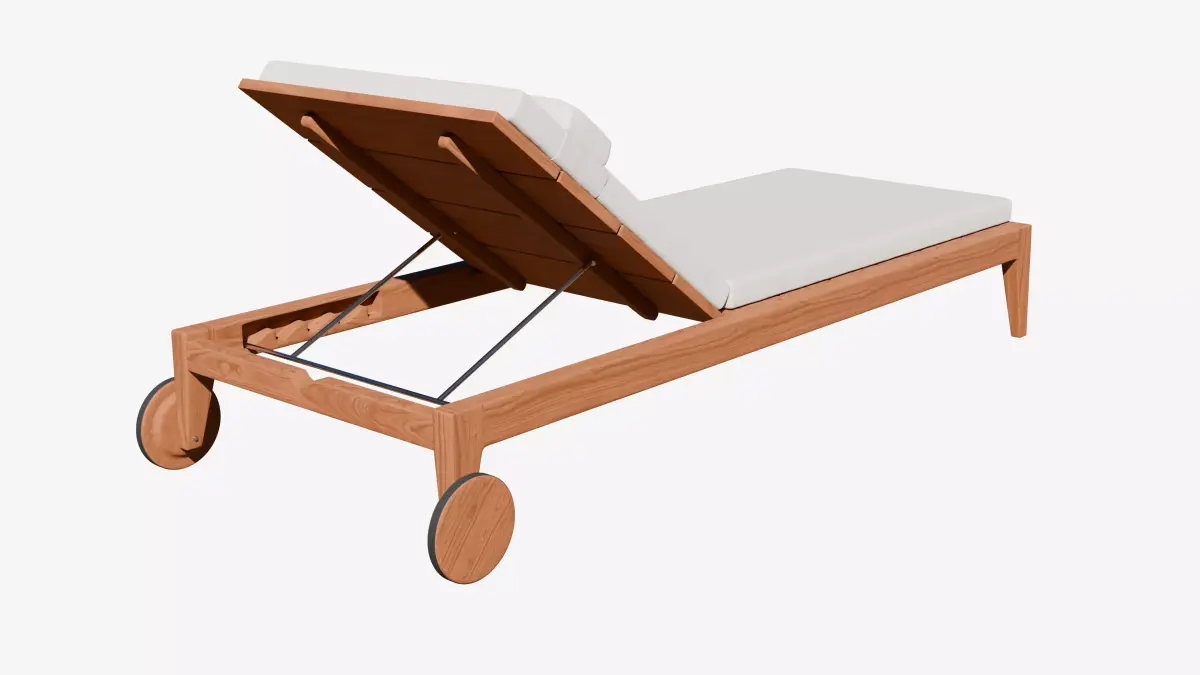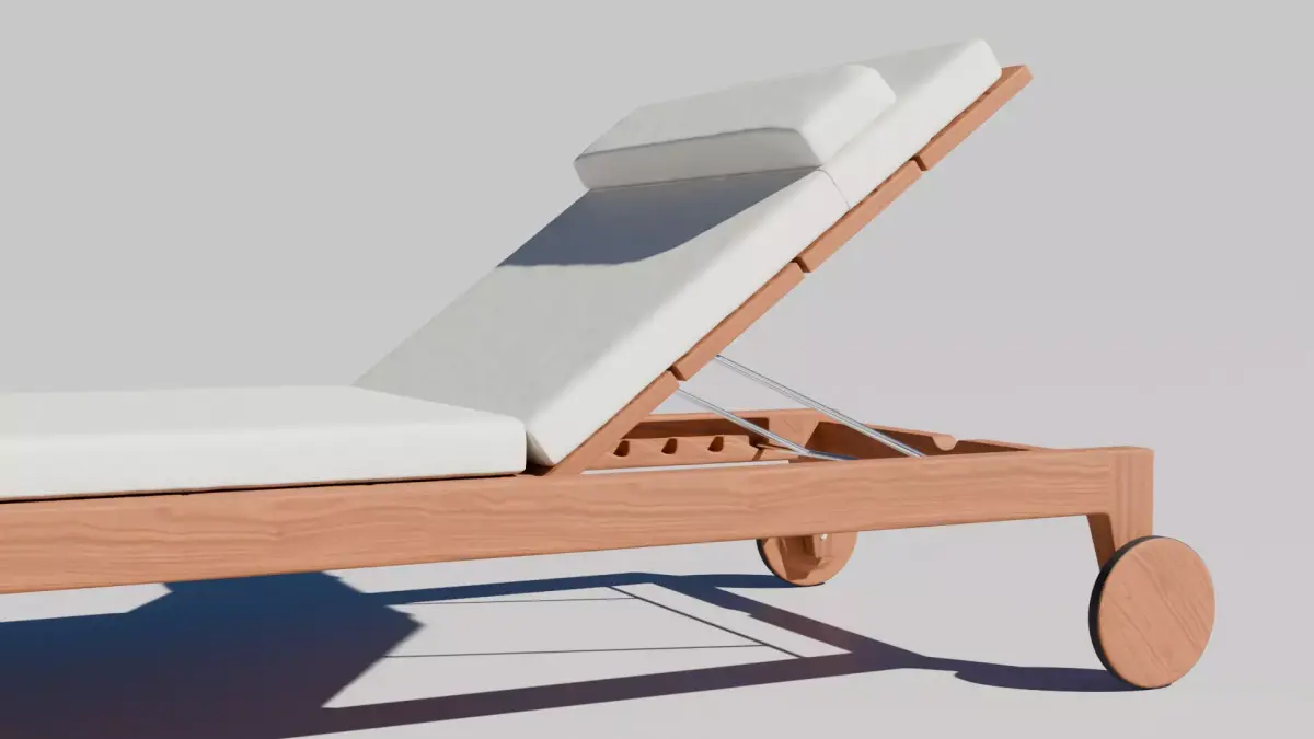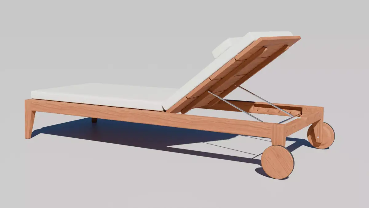 High-quality 3D model of a sun lounger with a wooden frame and soft cushion. Perfect for exterior and interior visualizations, architectural projects, and product renderings.