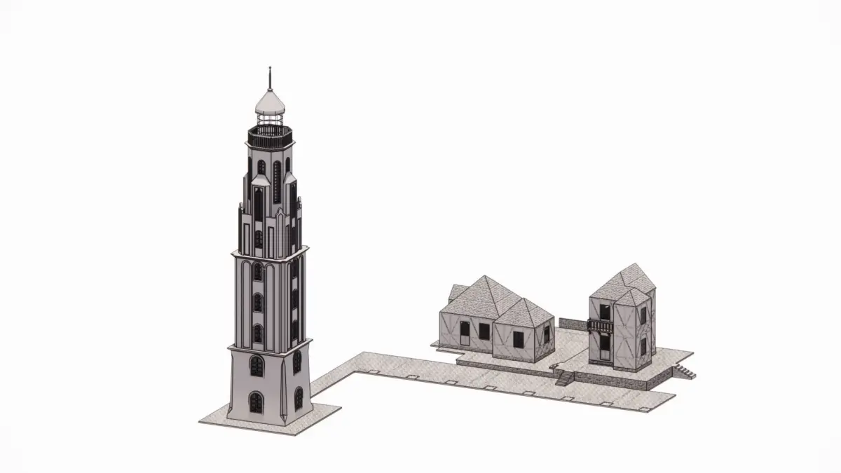 3d module for medieval houses design + lighthouse as a gift