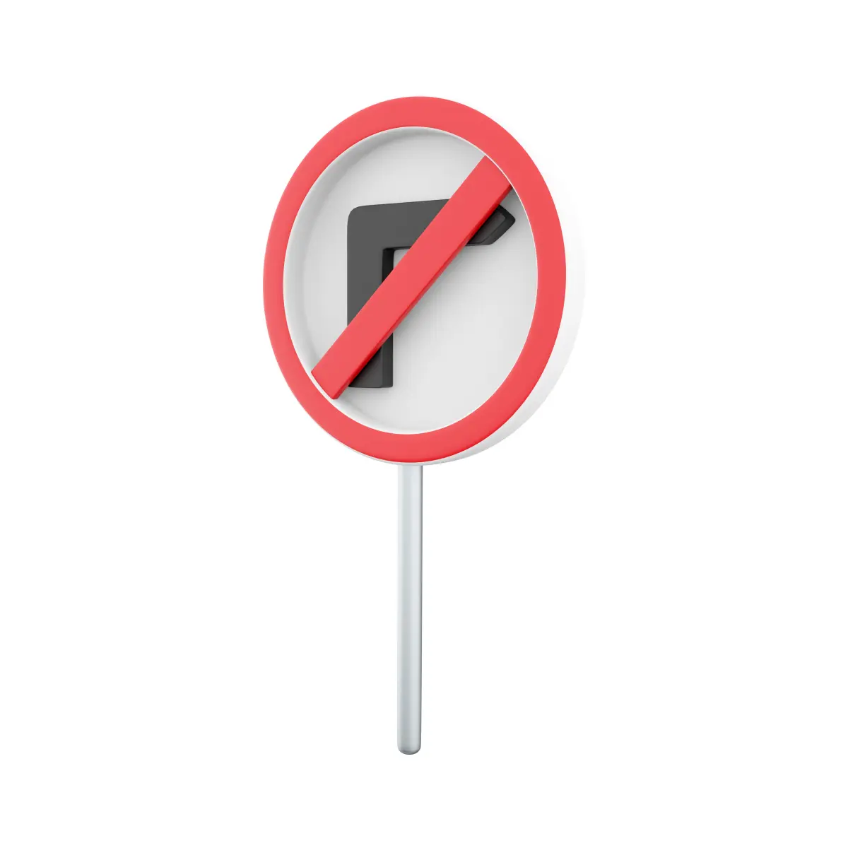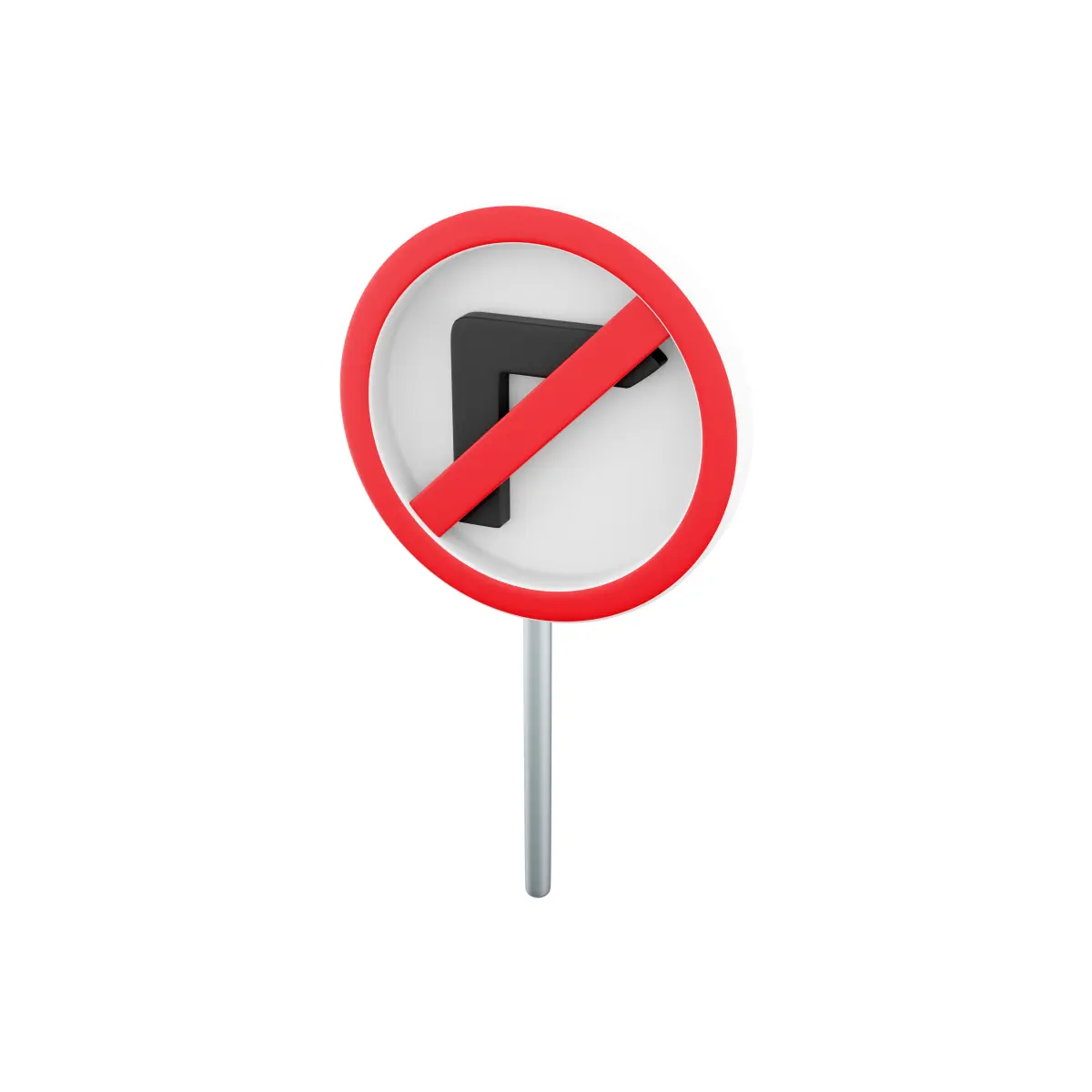 3d render No Right Turn Road Sign.3d rendering No Right Turn Road Sign cartoon icon