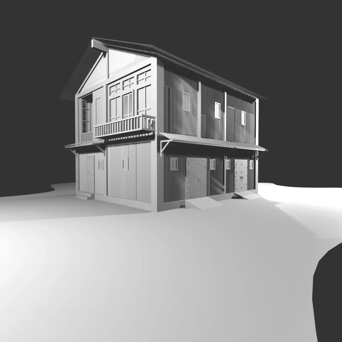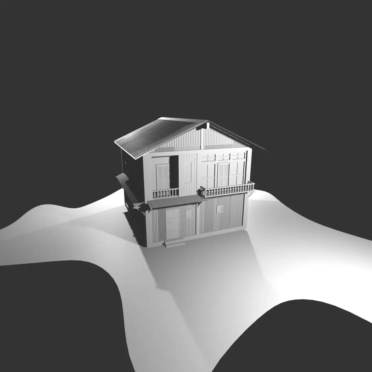 3d old house with old iron walls without textuers / material its ready to be used and editable in some project such as ( games - cinema - etc ) if you have also thoughts about it tell me and thanks.