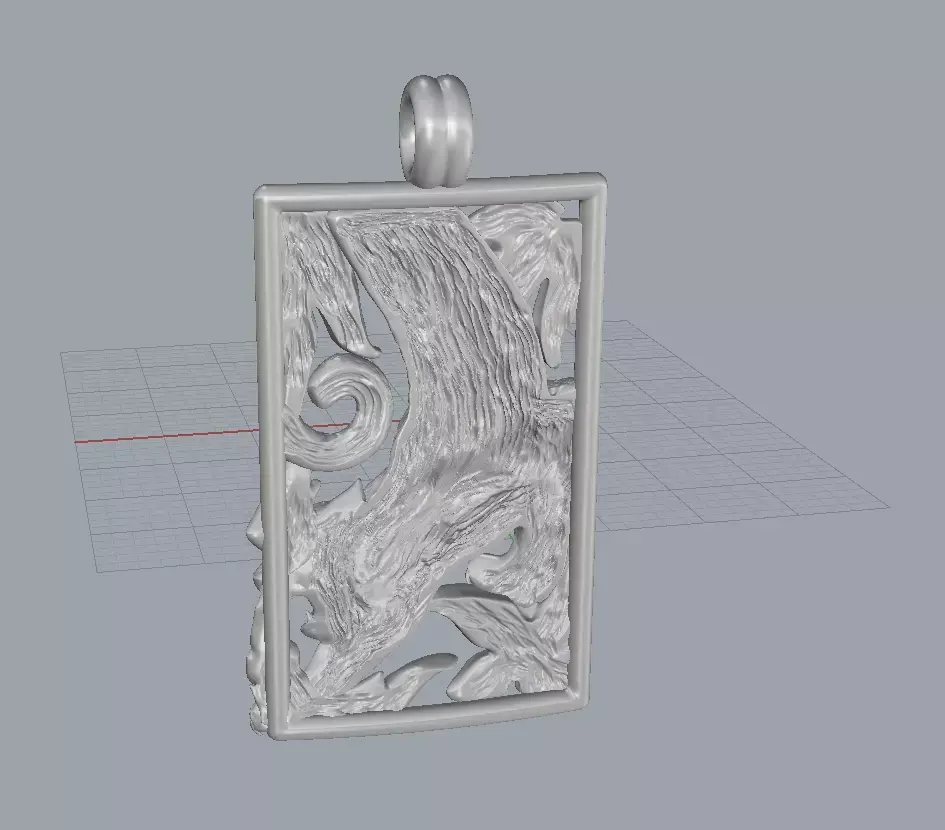 High-quality 3D model of a pendant featuring a detailed panther breaking out of a rectangular frame, surrounded by decorative leaves.This model is designed for jewelry production and is suitable for 3D printing, CNC milling, and rendering.