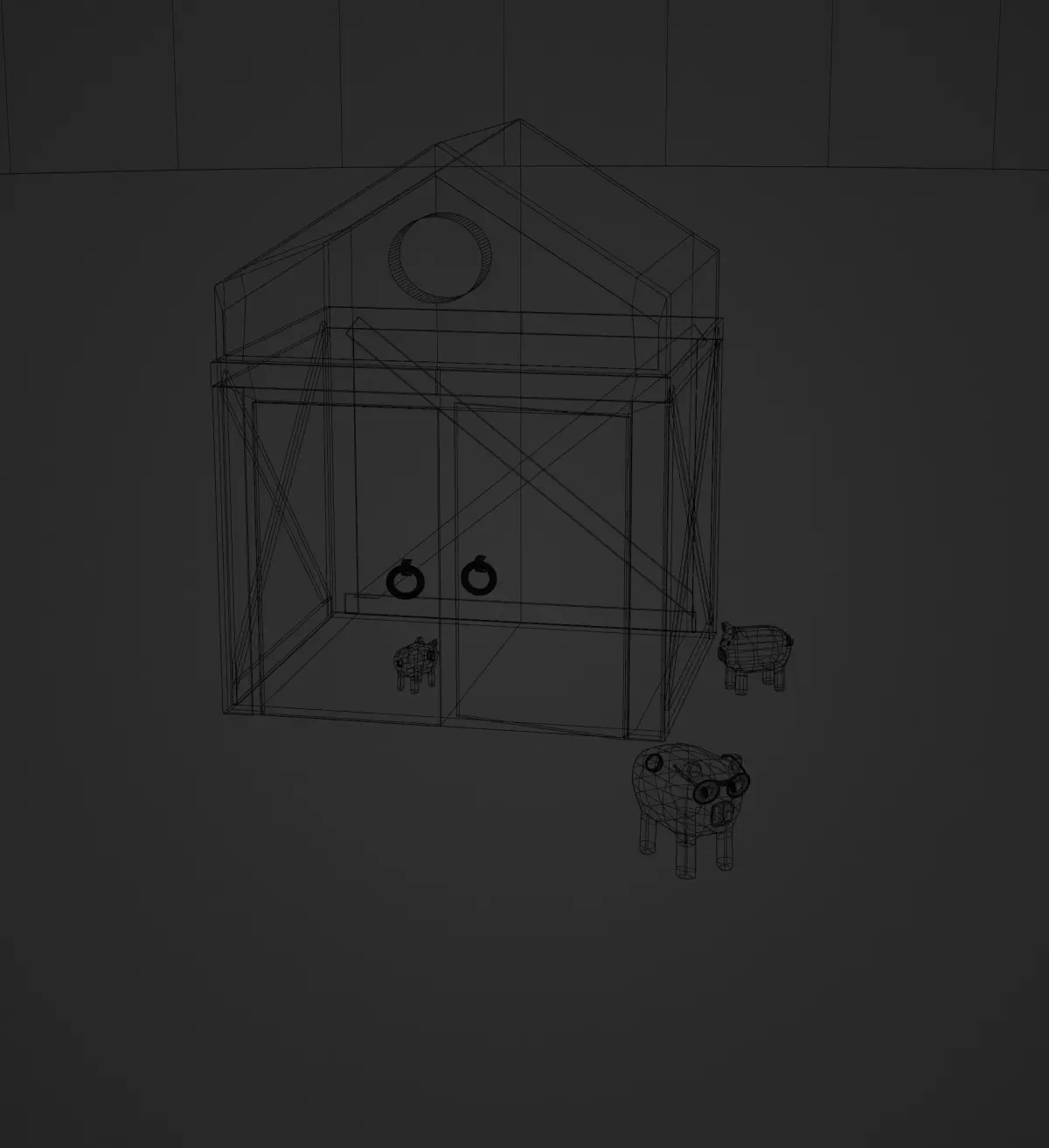 3D Pig With House And Two Pigs.