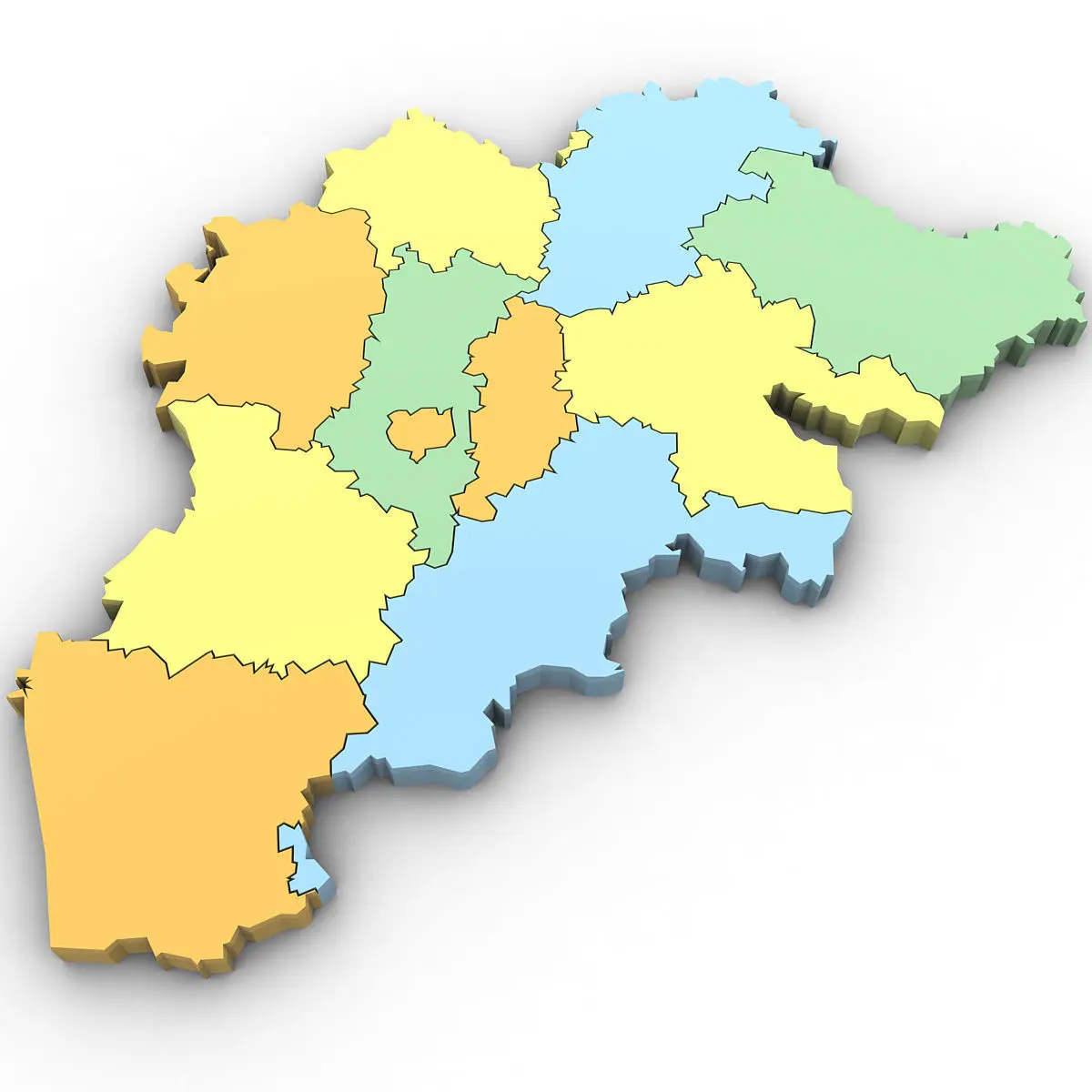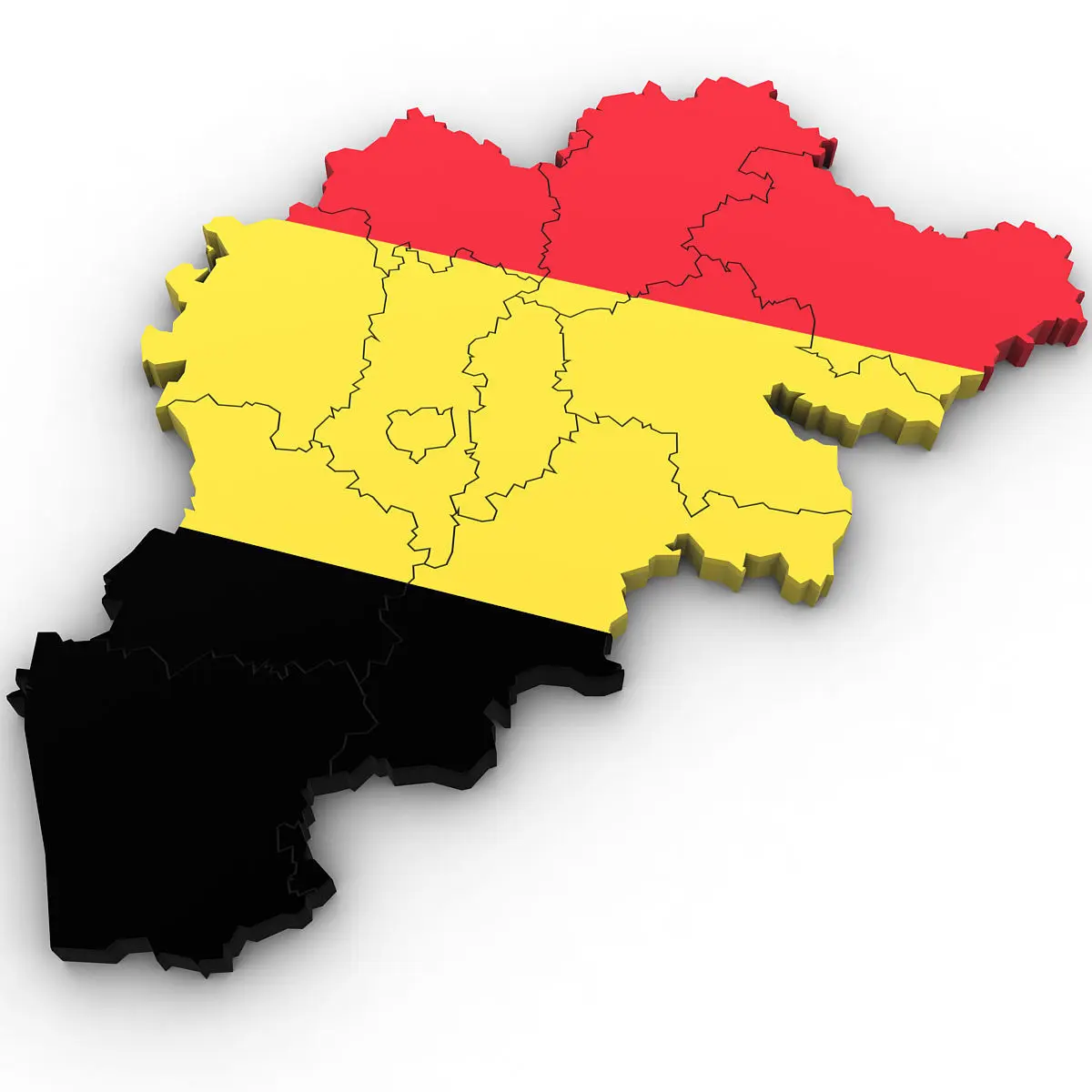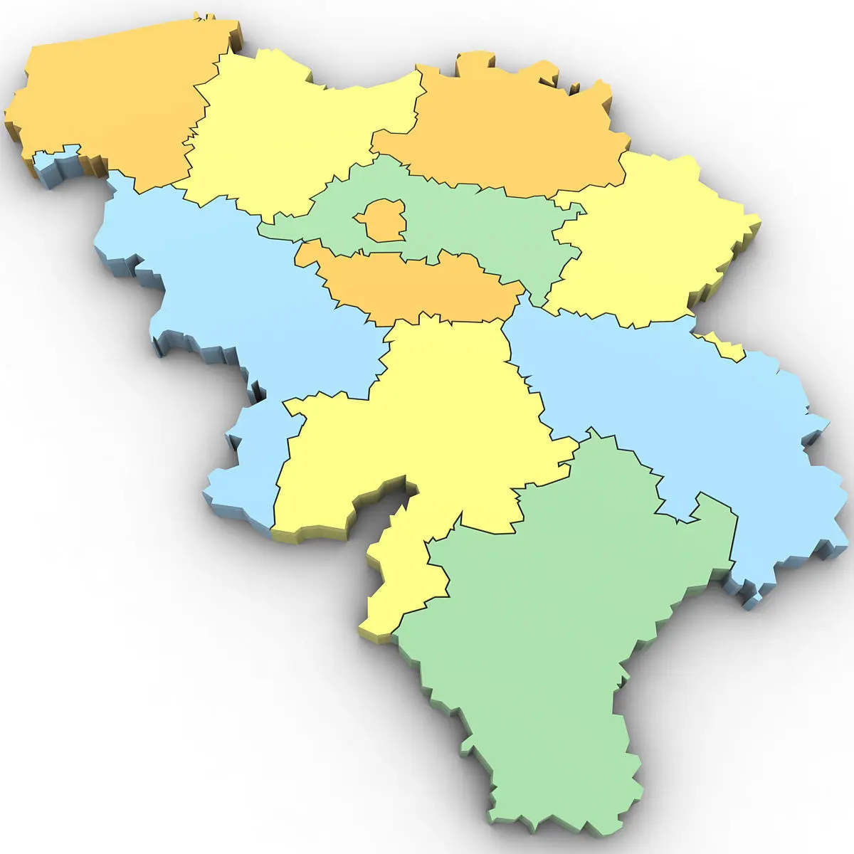 High poly 3d model of the map of Belgium. Includes all the regions of Belgium.