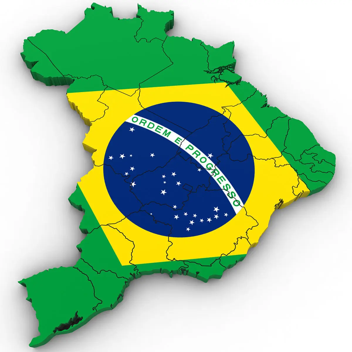 High poly 3d model of the map of Brazil. Includes all the regions of Brazil.