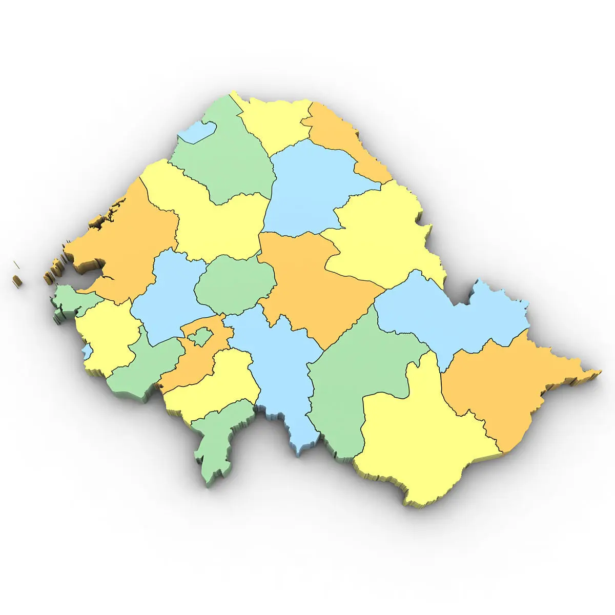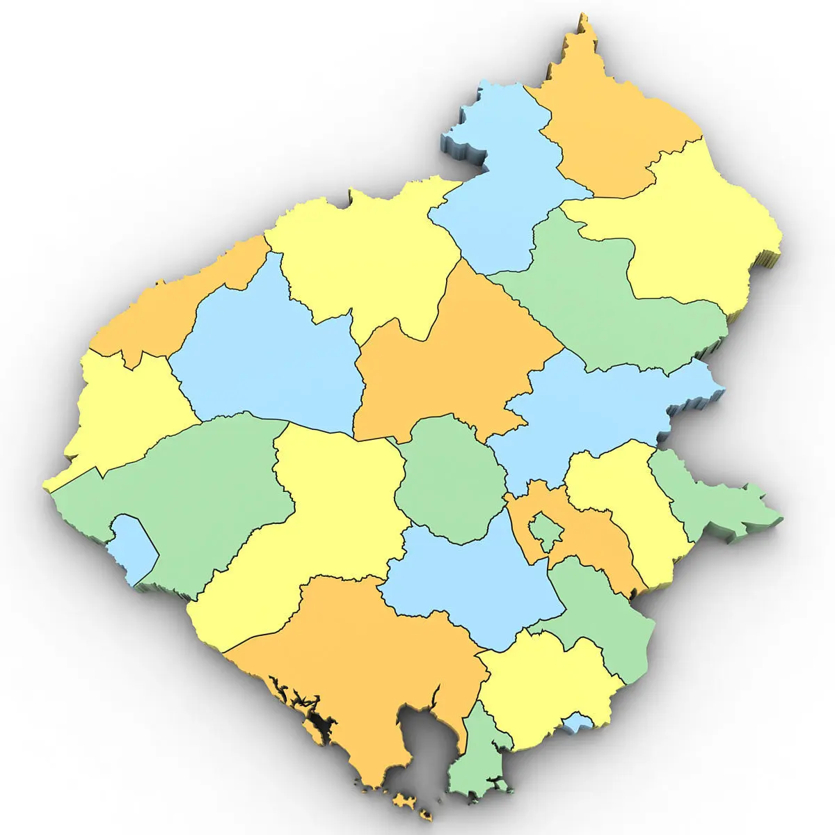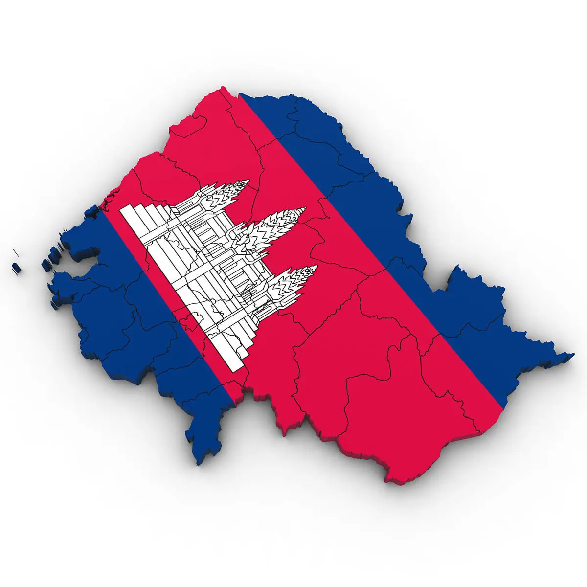 High poly 3d model of the map of Cambodia. Includes all the regions of Cambodia.