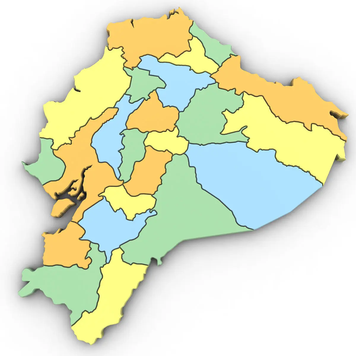 High poly 3d model of the map of the Ecuador. Includes all the regions of Ecuador including the Galapagos Islands.