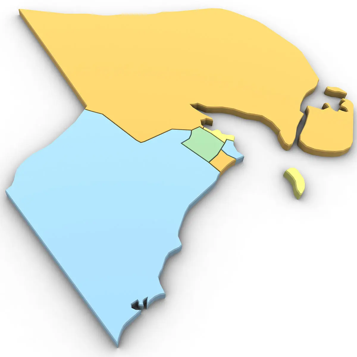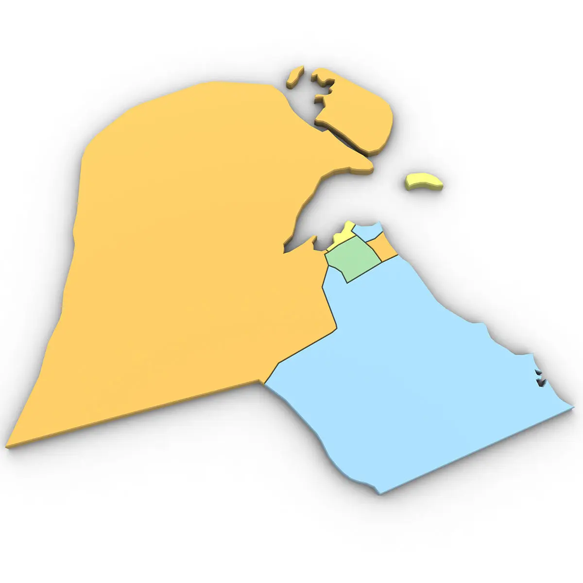 High poly 3d model of the map of Kuwait. Includes all the regions of Kuwait.