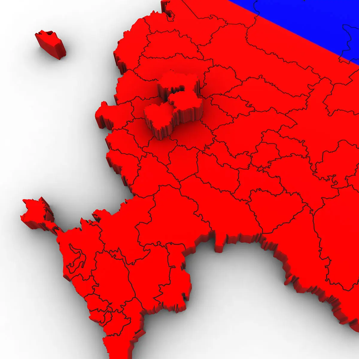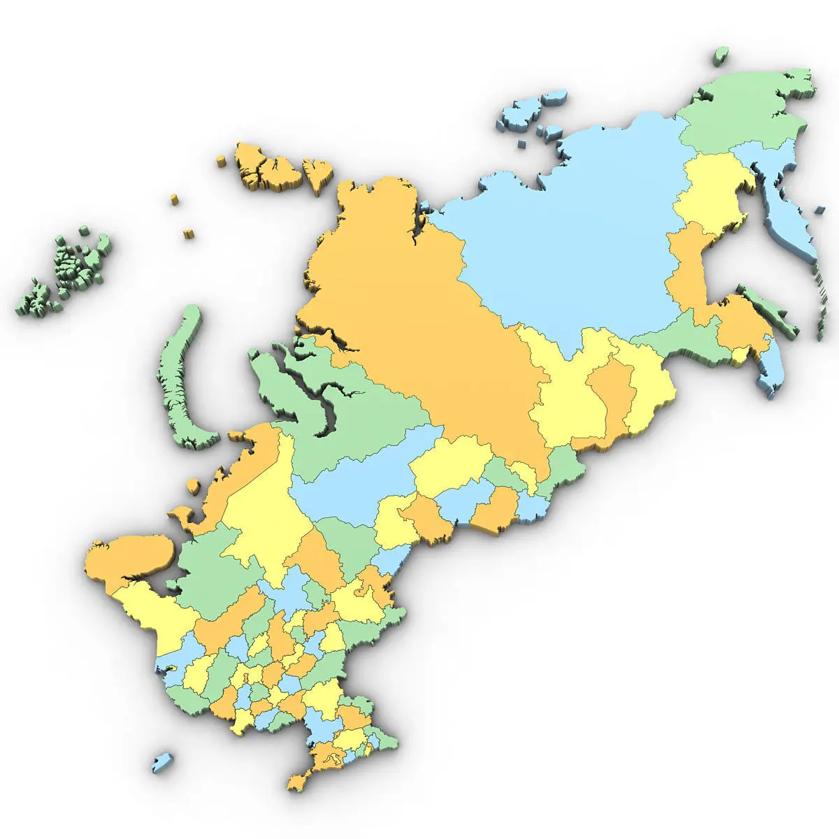 High poly 3d model of the map of Russia. Includes all the regions of Russia.