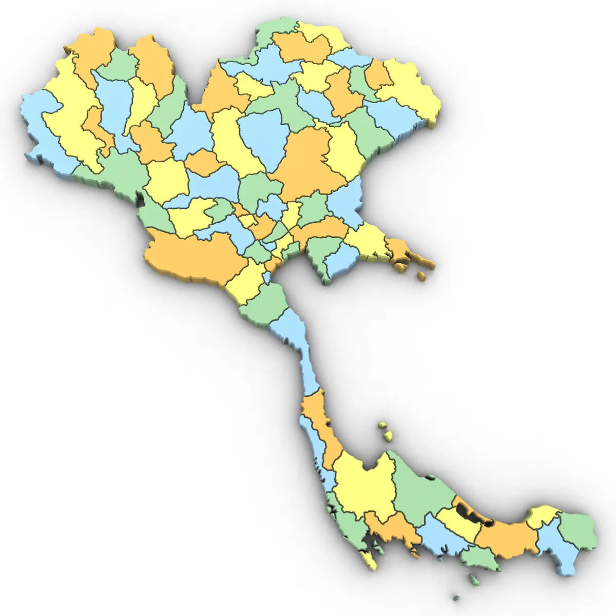 High poly 3d model of the map of Thailand. Includes all the regions of Thailand.